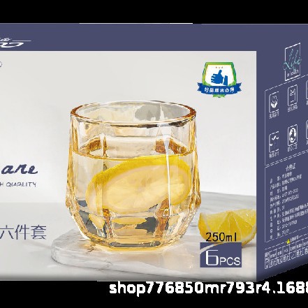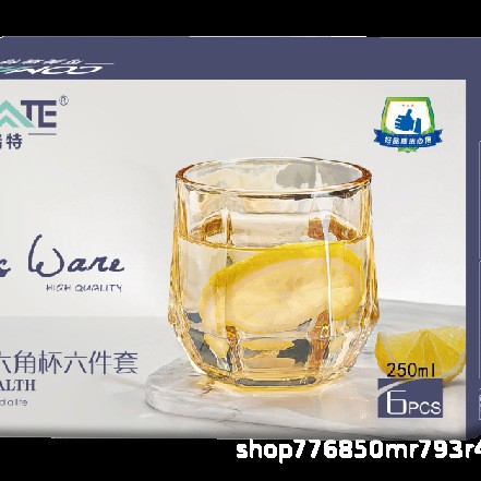 Coriette Amber Hexagon Cup 6 종 세트 위스키 와인 컵 과일 티 컵 가정용 유리 우유 컵스토어 가기