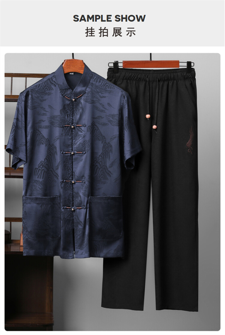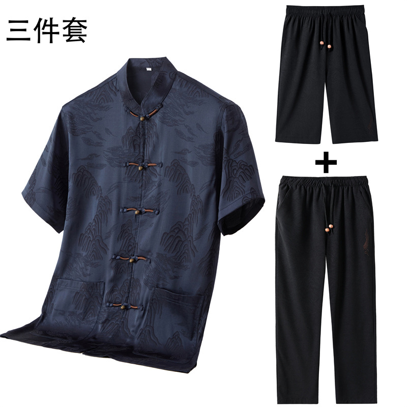 2024 여름 새로운 중국 스타일 중국 스타일 탕 세트 뽕나무 실크 세트 중년 여름 투피스 3 피스 세트스토어 가기