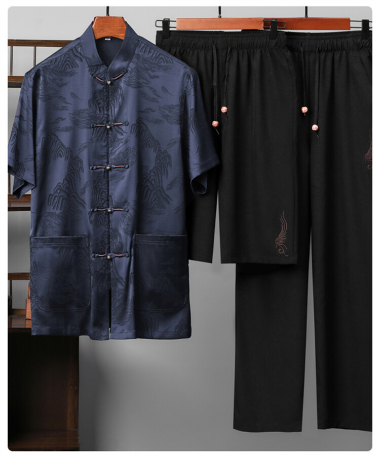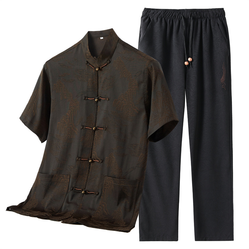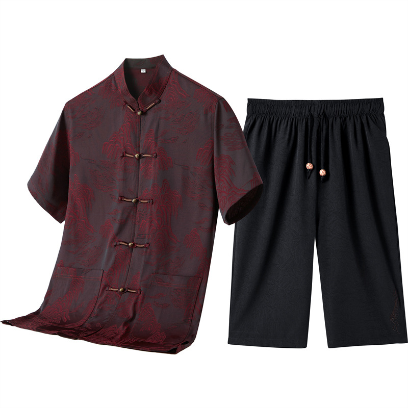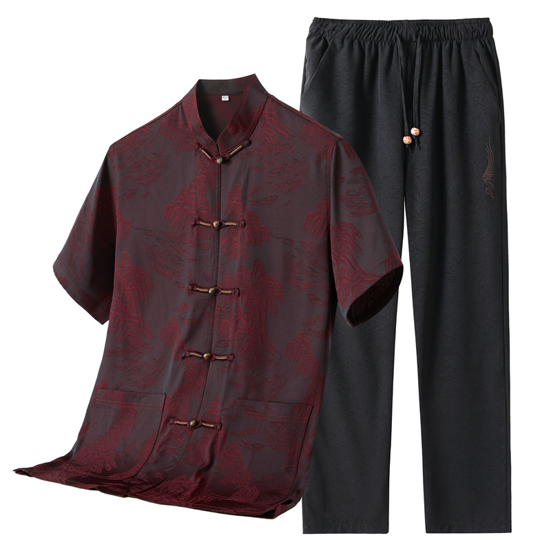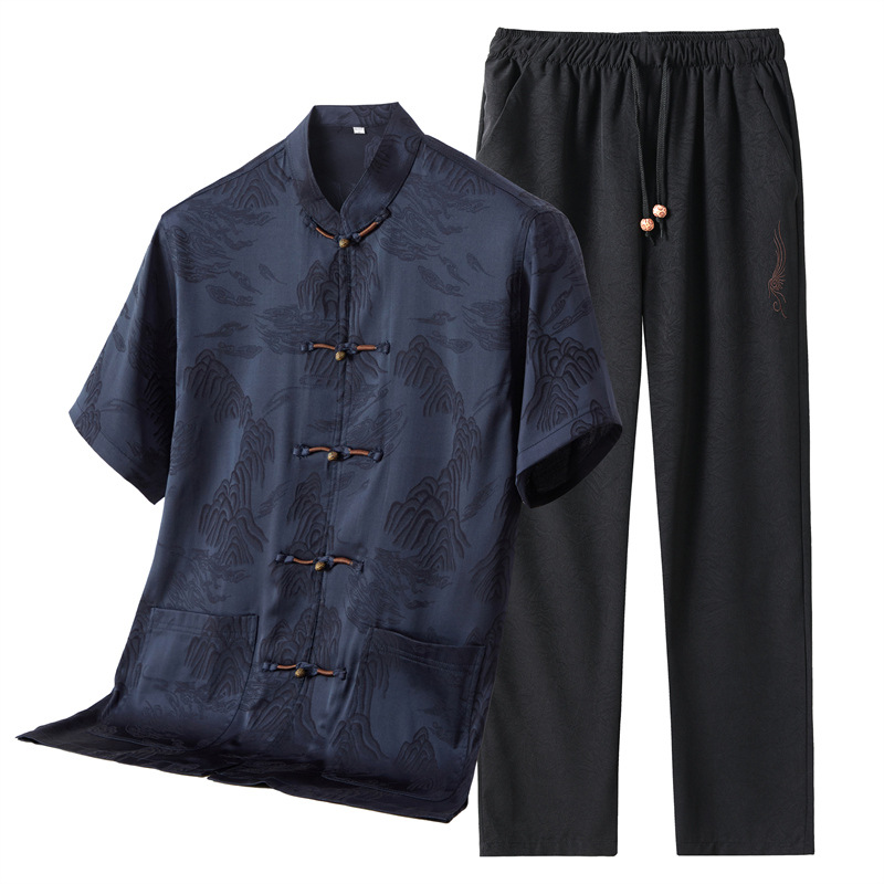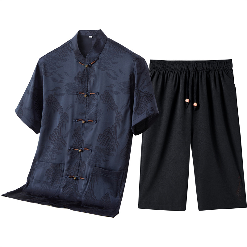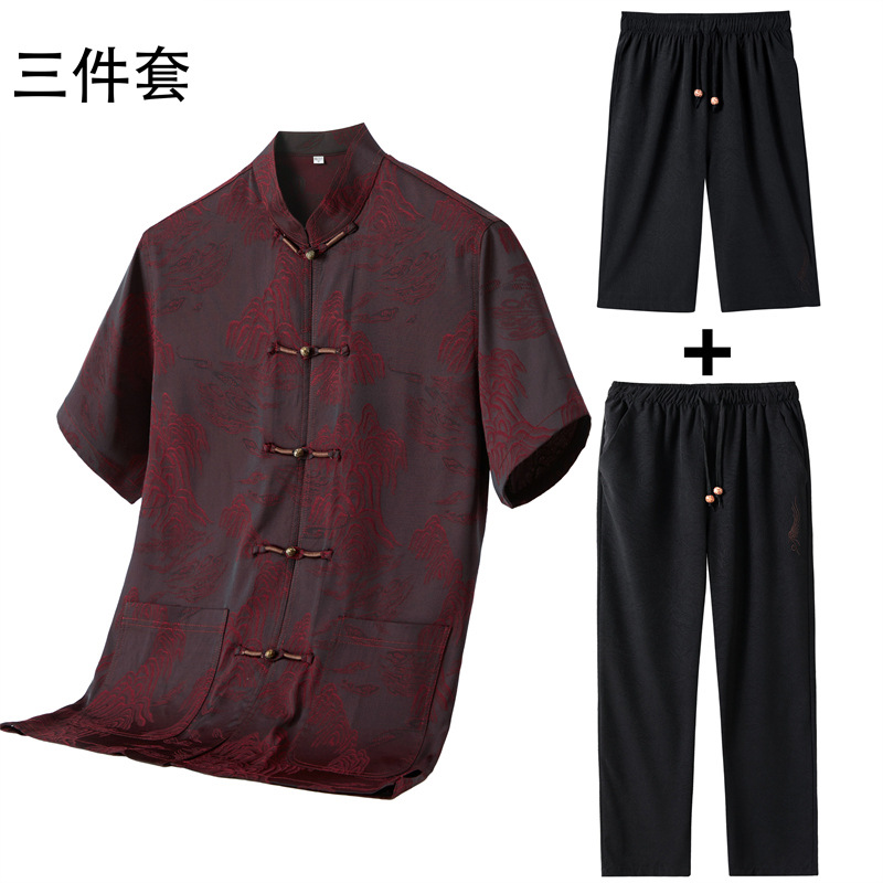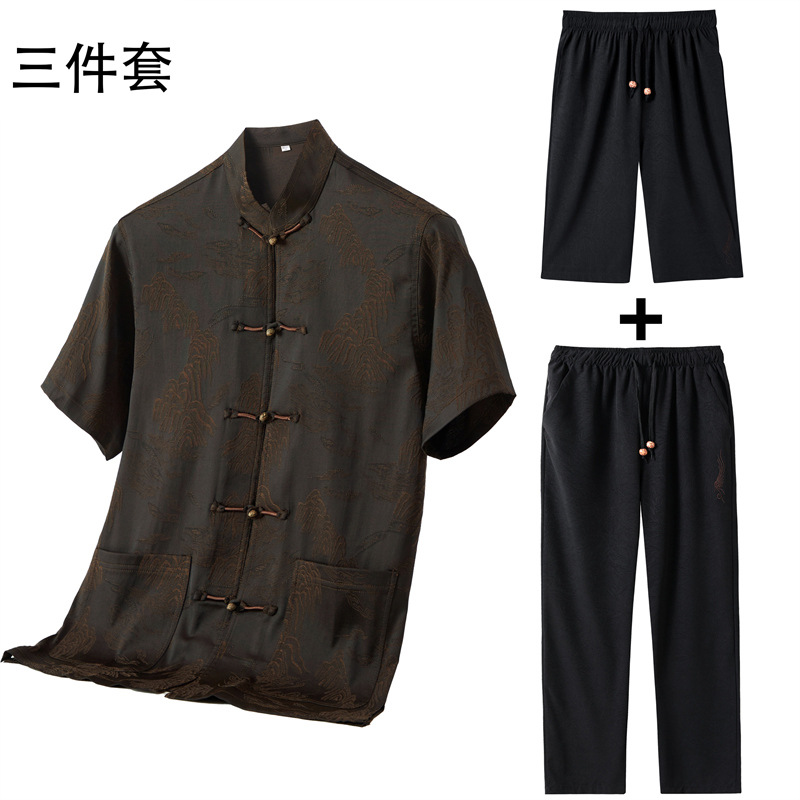 2024 여름 새로운 중국 스타일 중국 스타일 탕 세트 뽕나무 실크 세트 중년 여름 투피스 3 피스 세트