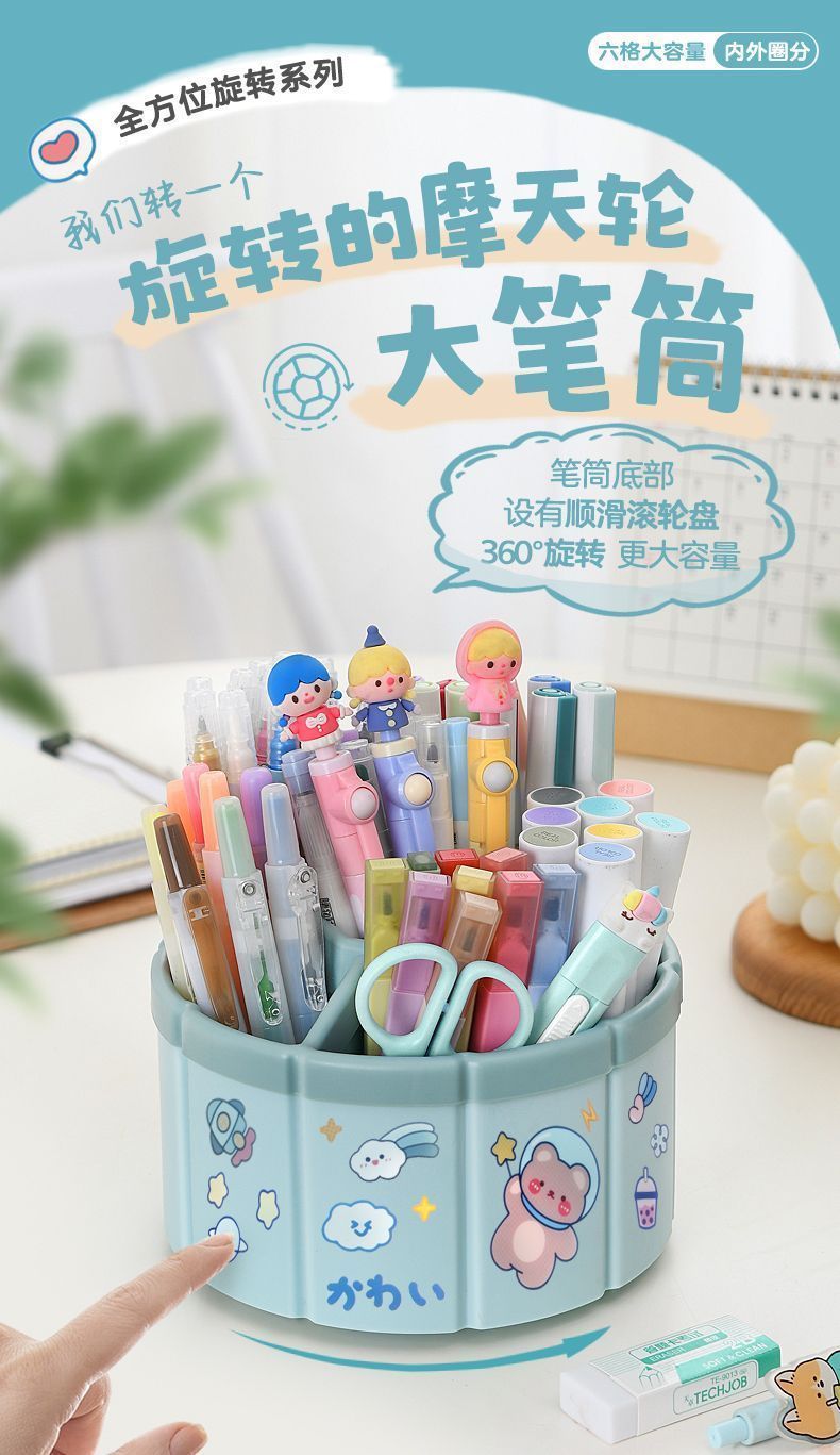 관람차 6 그리드 회전 펜 홀더 대용량 다기능 데스크탑 스토리지 박스 고가치 화장품 브러시 스토리지 버킷