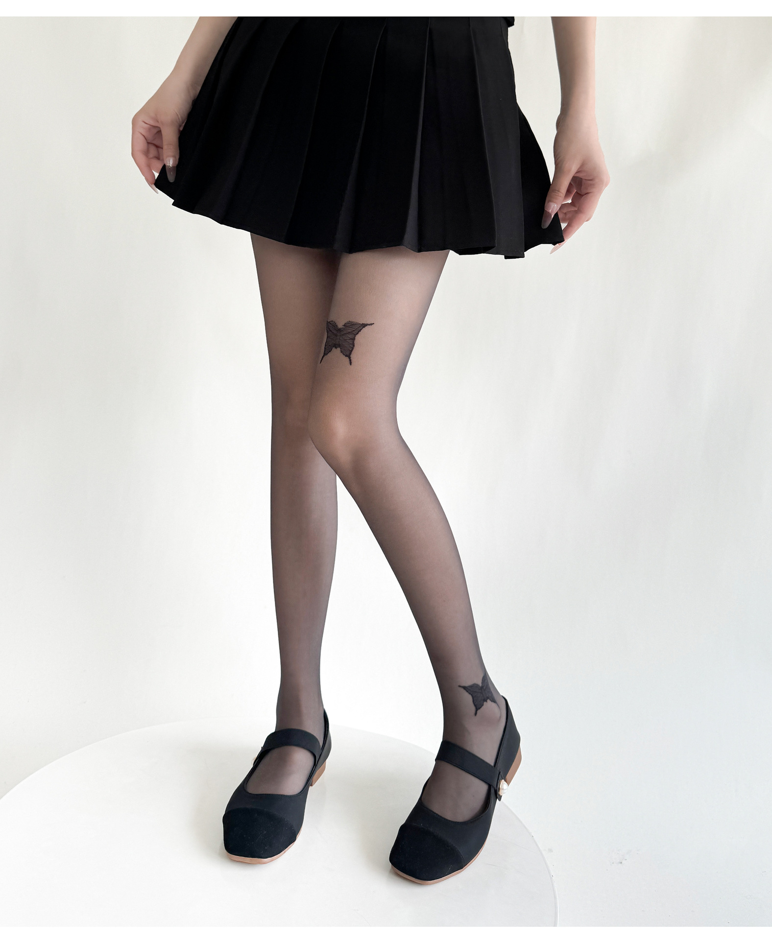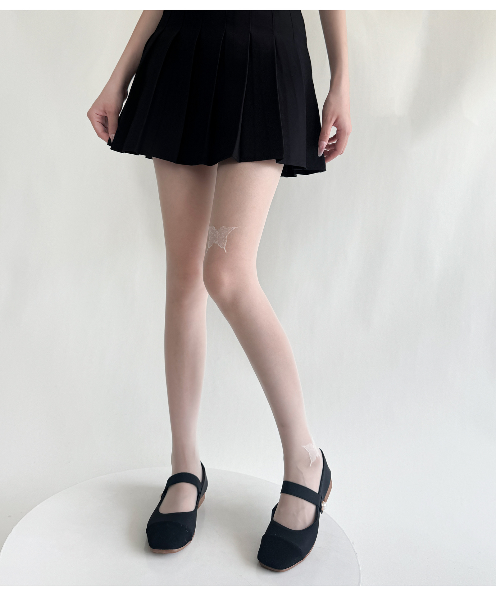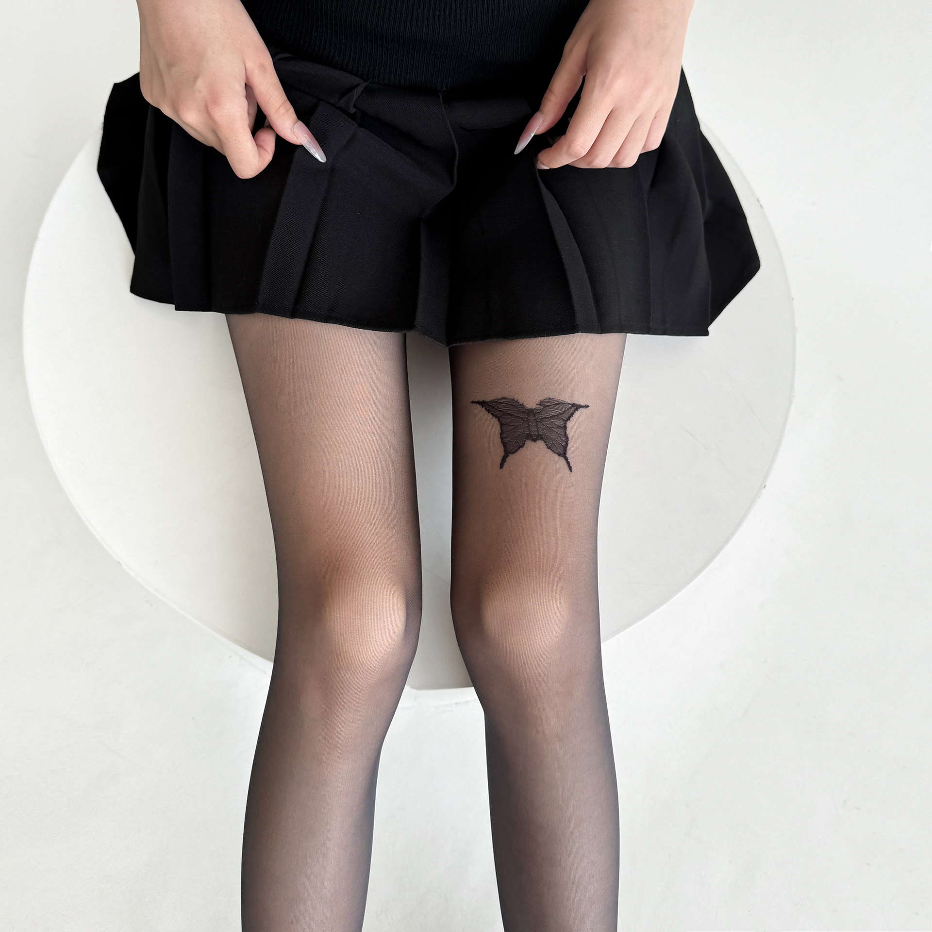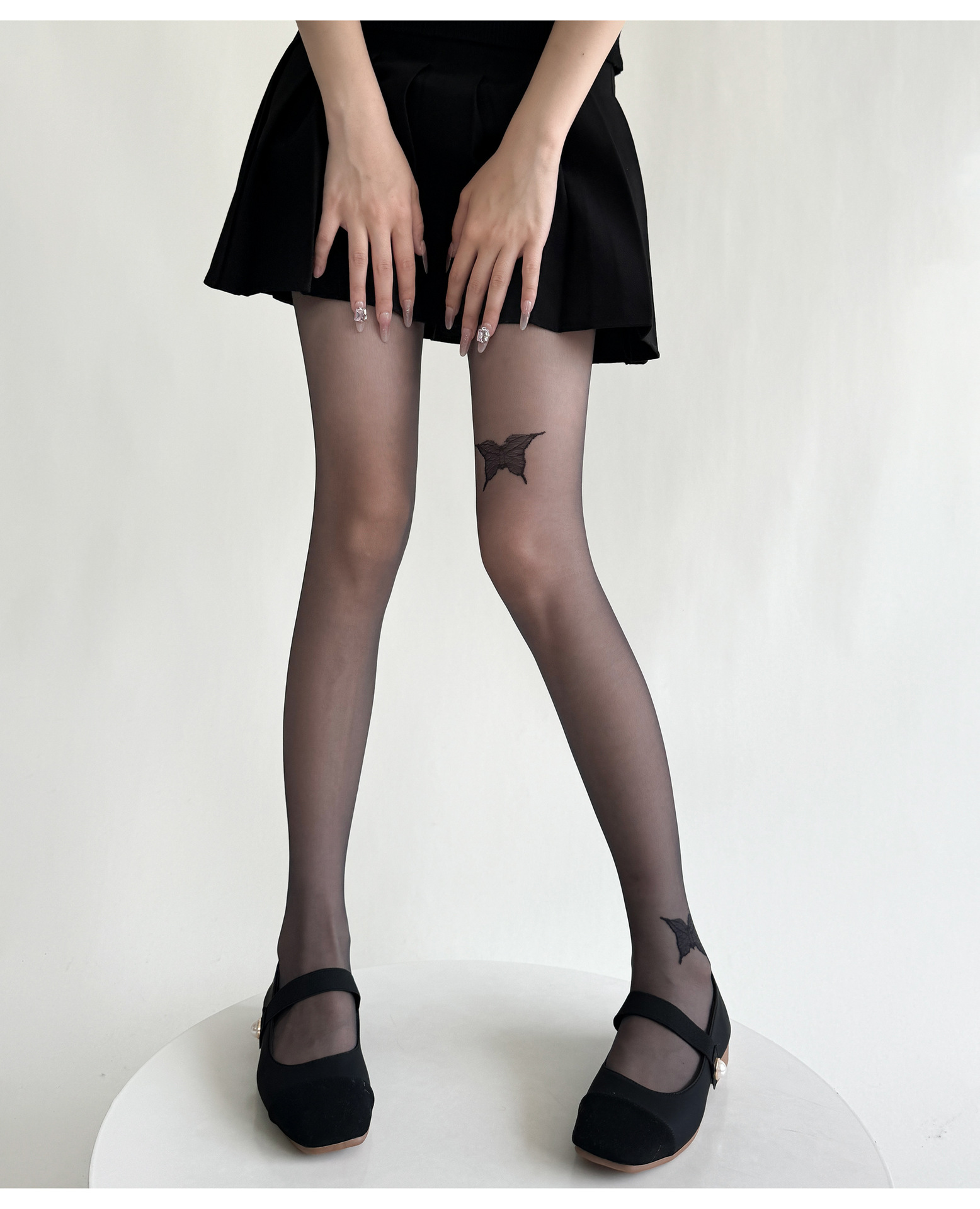 봄과 여름 초박형 자의적 인 실크 스타킹 검은 순수한 바람 나비 인쇄베이스 스타킹 안티 실크 섹시 우유 화이트 스타킹