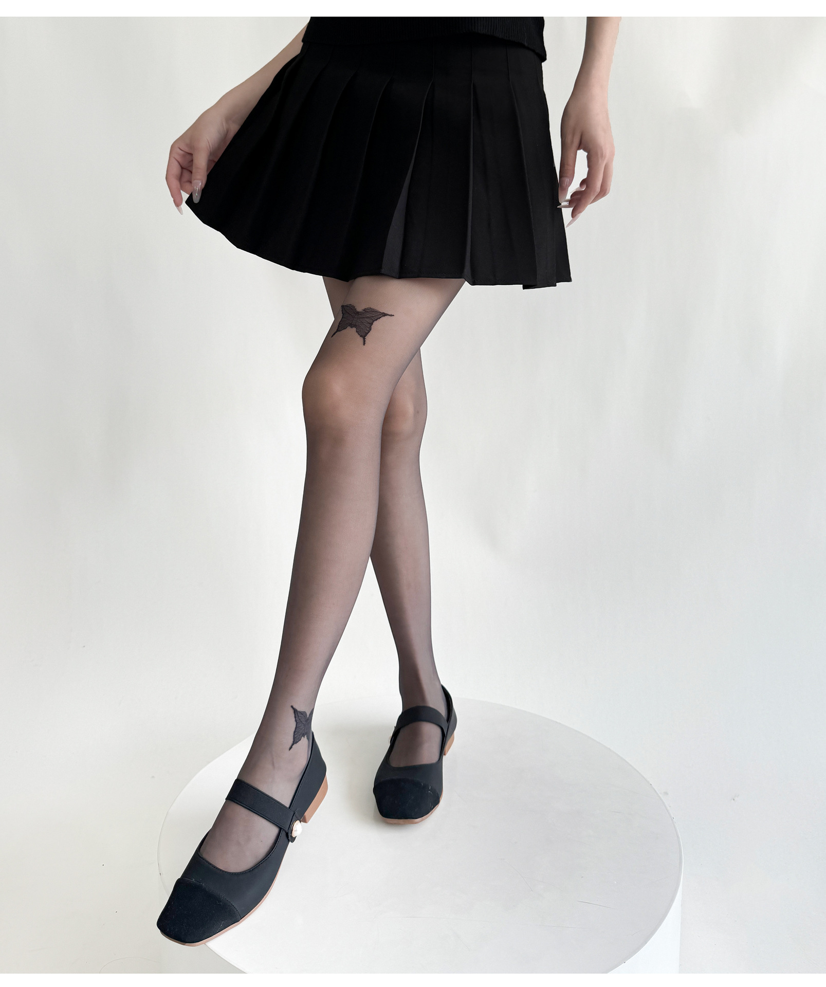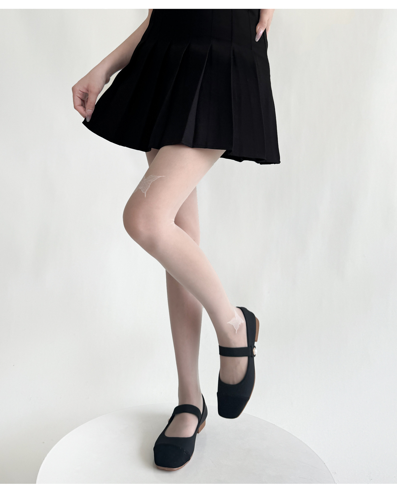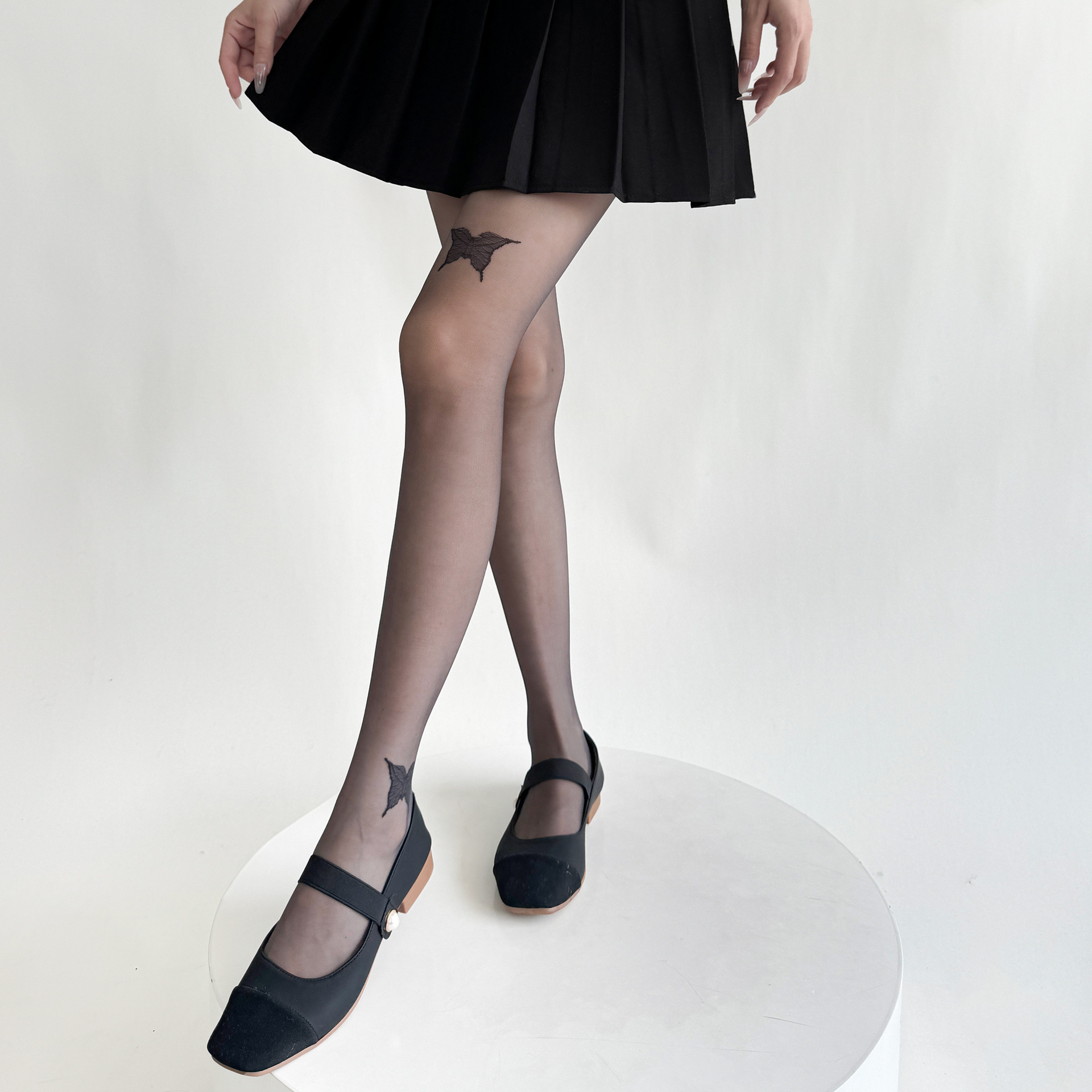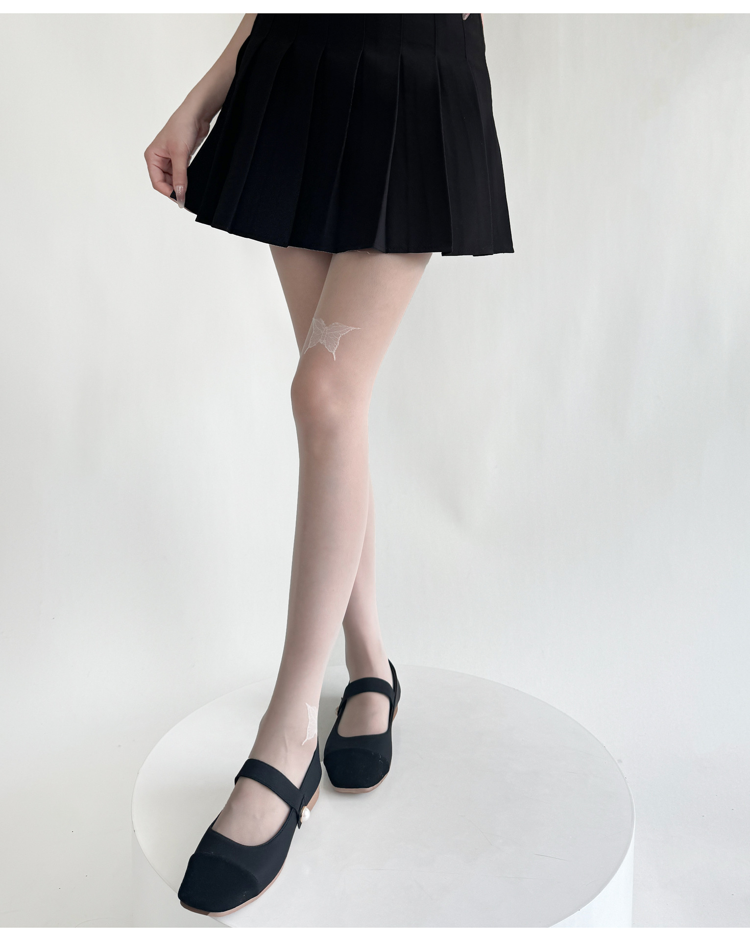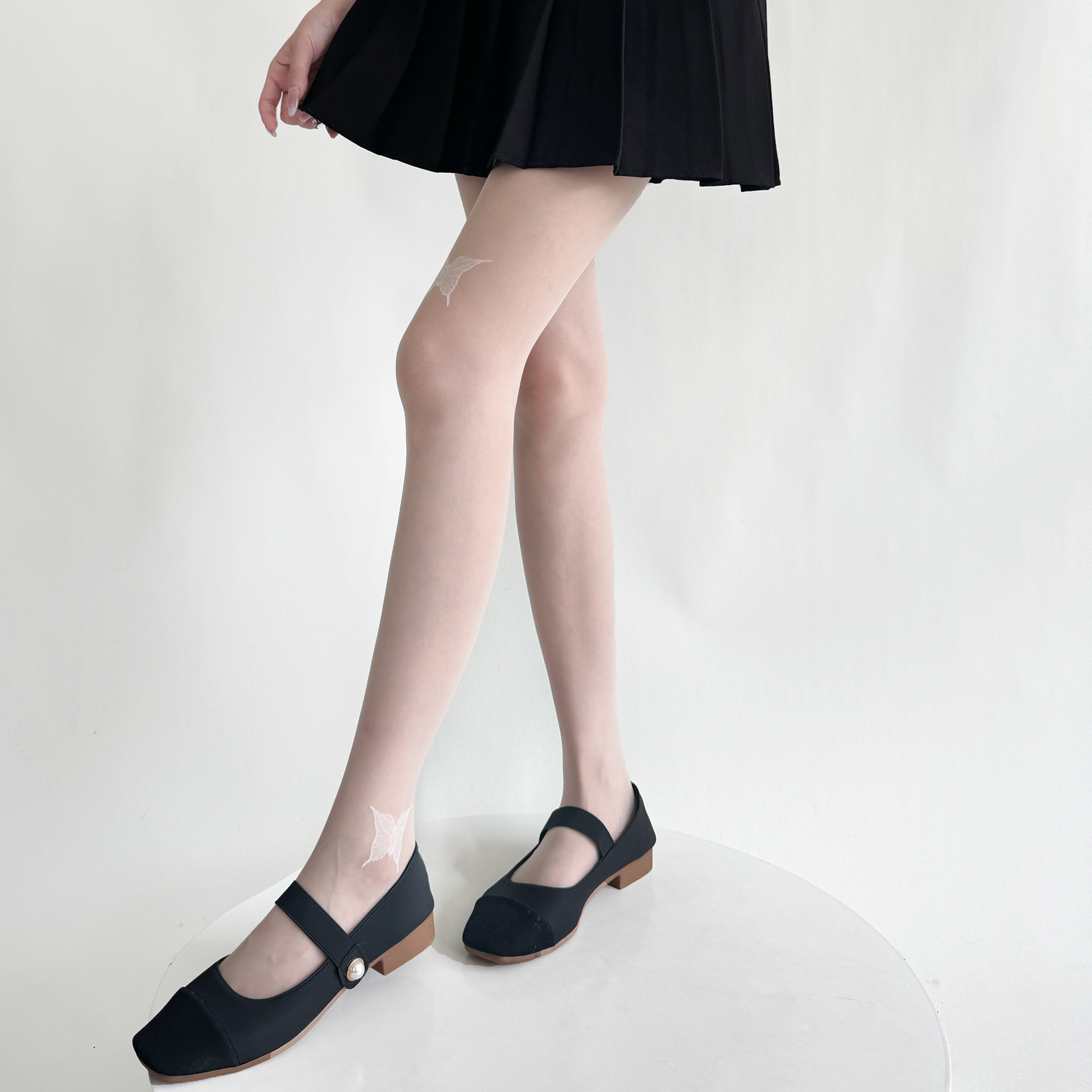 봄과 여름 초박형 자의적 인 실크 스타킹 검은 순수한 바람 나비 인쇄베이스 스타킹 안티 실크 섹시 우유 화이트 스타킹