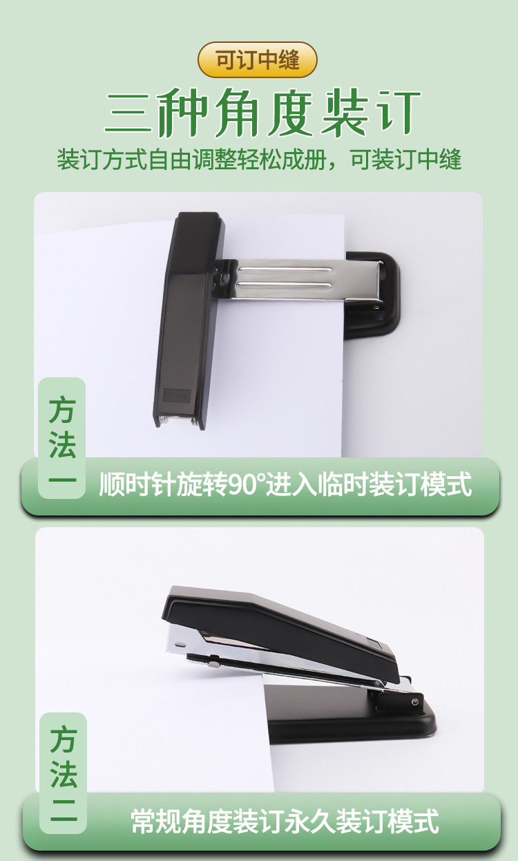 스테이플러 360도 회전식 스테이플러 다기능 중간 스티치 승마 스테이플러 사무실 학생 제본기 OEM스토어 가기