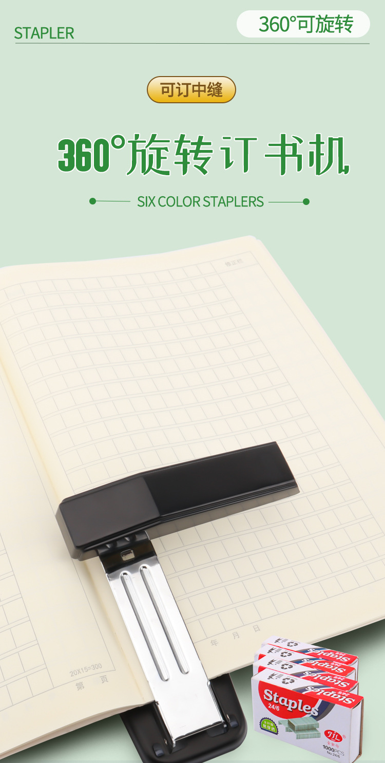스테이플러 360도 회전식 스테이플러 다기능 중간 스티치 승마 스테이플러 사무실 학생 제본기 OEM