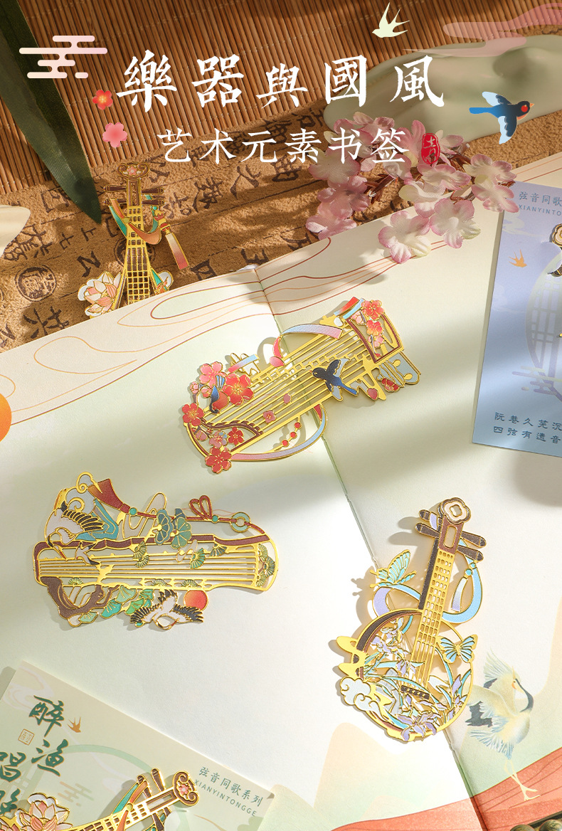 Eslite 현악 호모폰 시리즈 기타 금속 책갈피 선물 생일 선물 Guofeng 악기 북마크보기스토어 가기