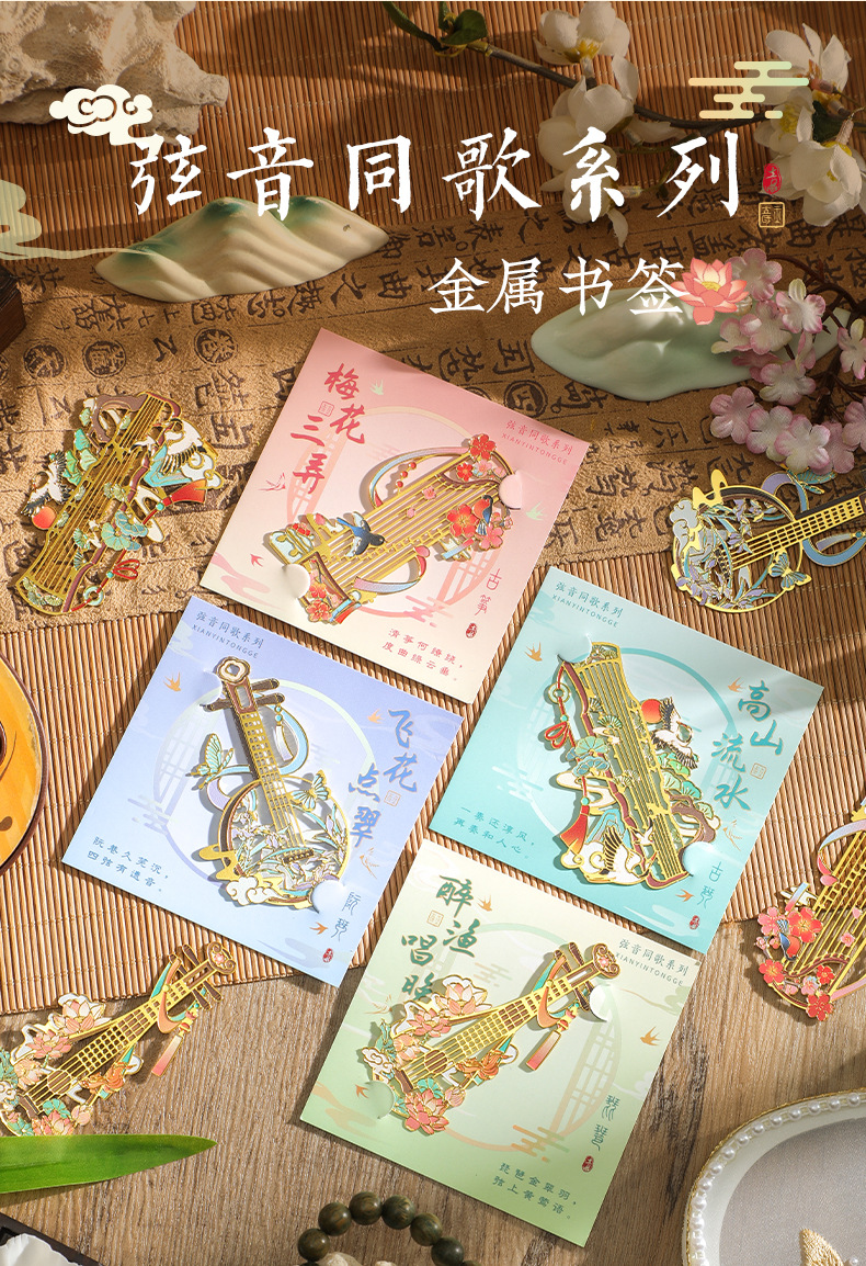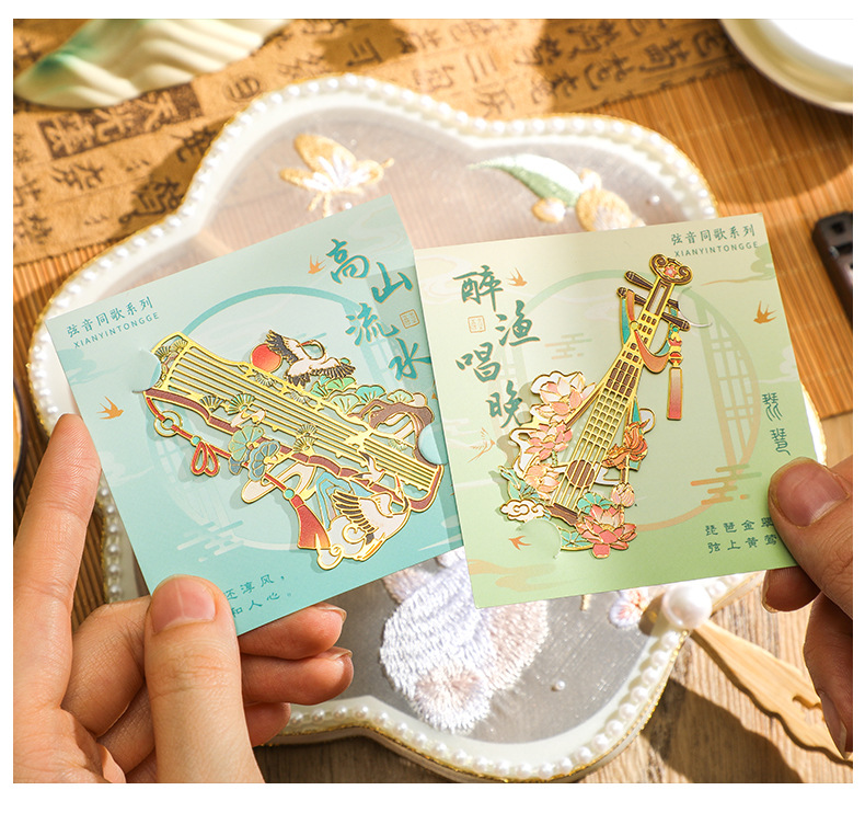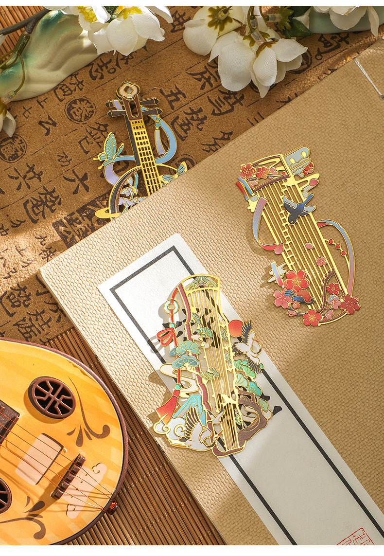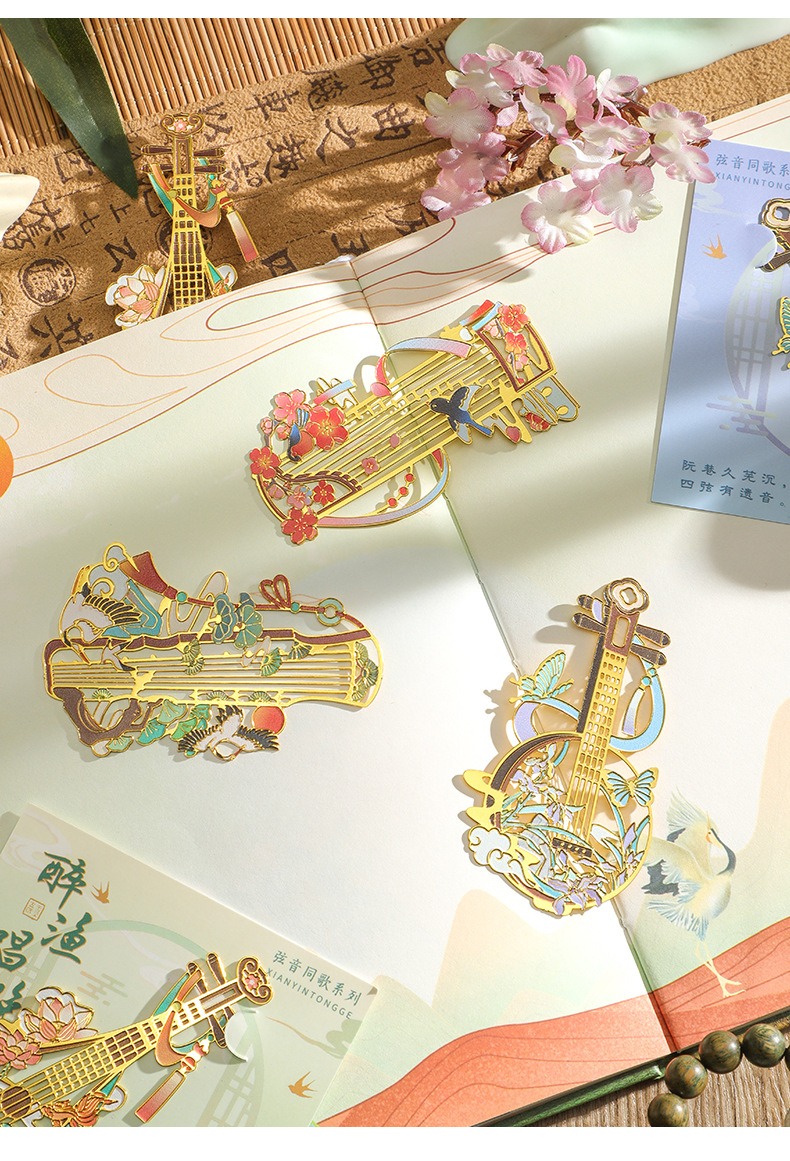 Eslite 현악 호모폰 시리즈 기타 금속 책갈피 선물 생일 선물 Guofeng 악기 북마크보기