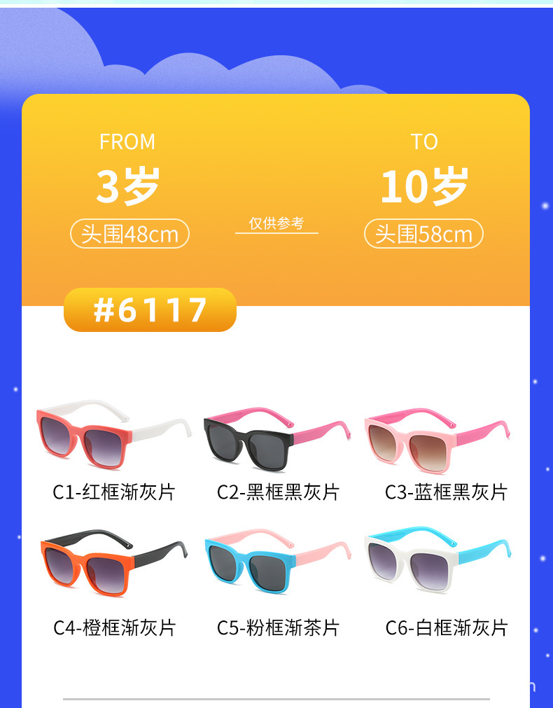 2023 공장 새로운 재고 도매 어린이 안경 UV 보호 선글라스 아기 안경 어린이 선글라스 6117스토어 가기