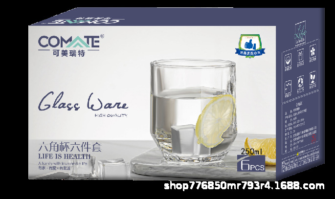 카마 라이트 육각형 워터 컵 세트 투명 유리 워터 컵 아침 우유 컵 위스키 와인 컵 티 컵 과일 차