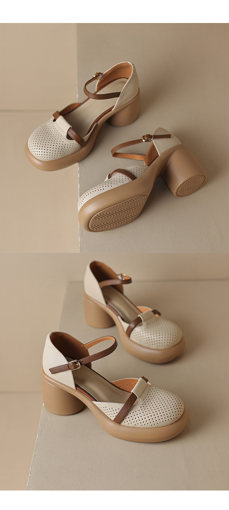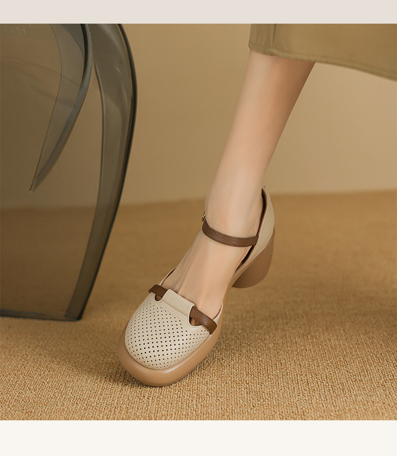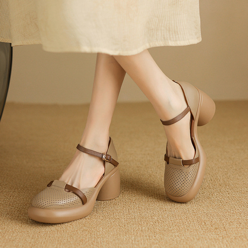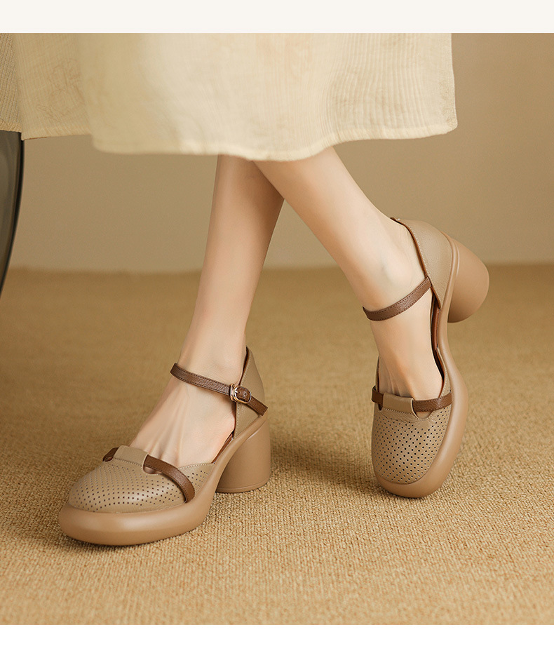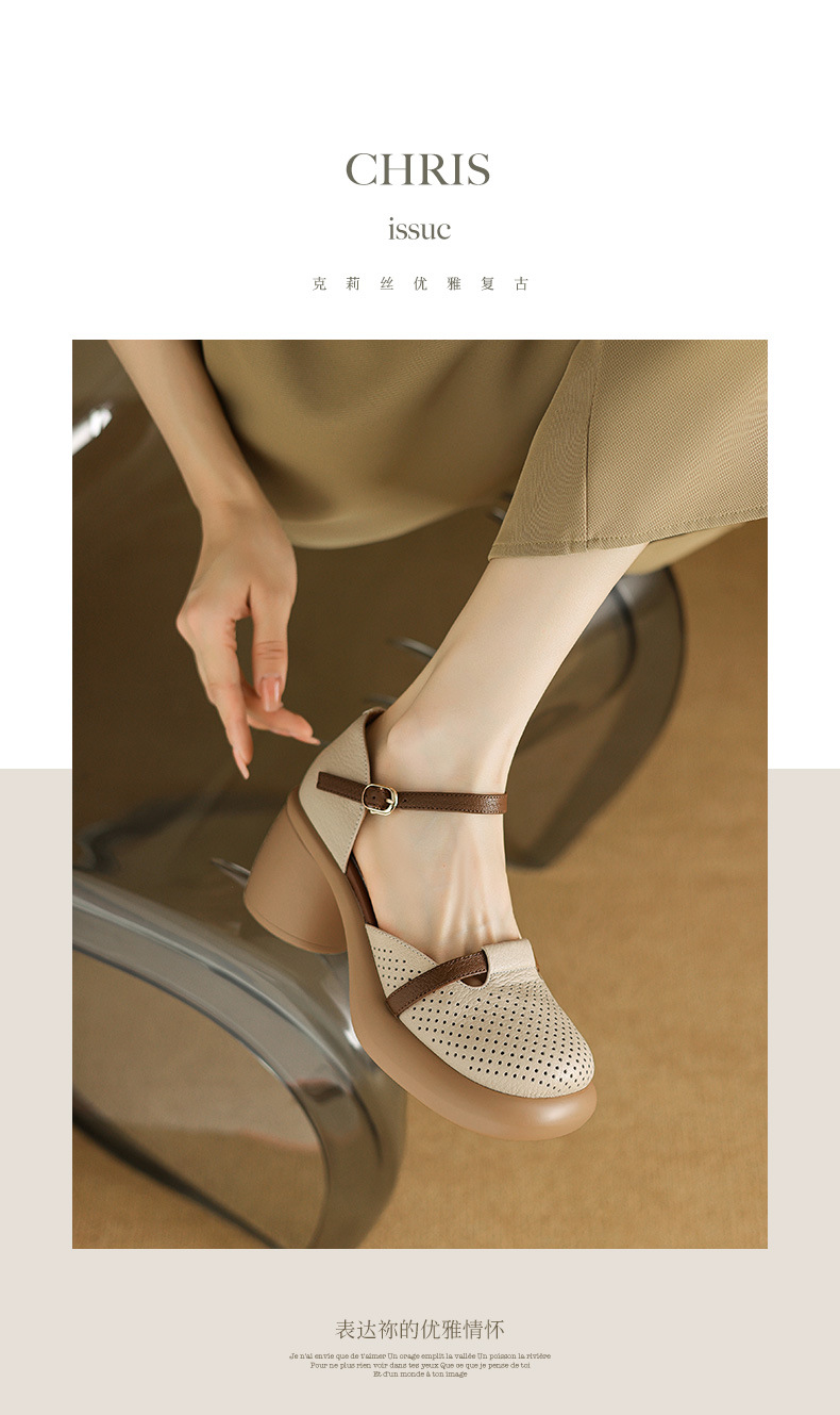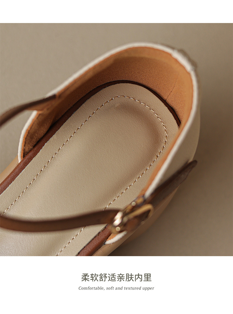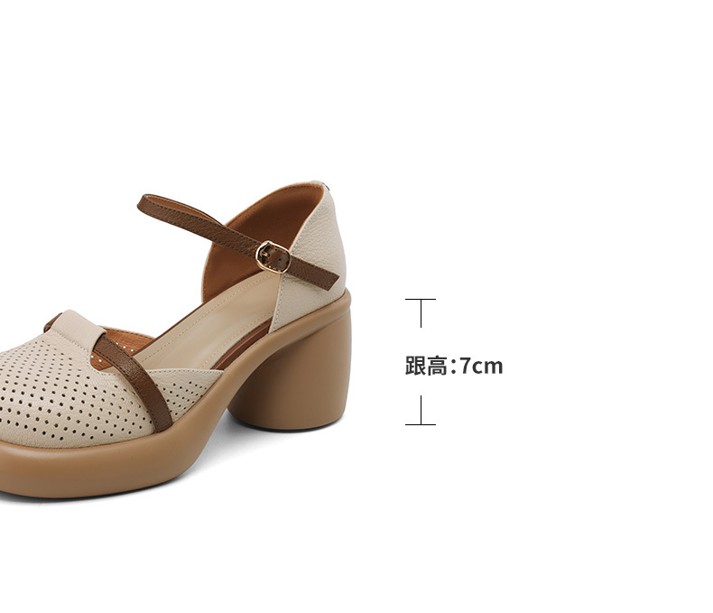 하이힐 신발 방수 플랫폼 피곤하지 않은 발 여성 신발 여름 스커트 두꺼운 밑창 가죽으로 덮인 머리 속이 빈 샌들 여성 여름스토어 가기