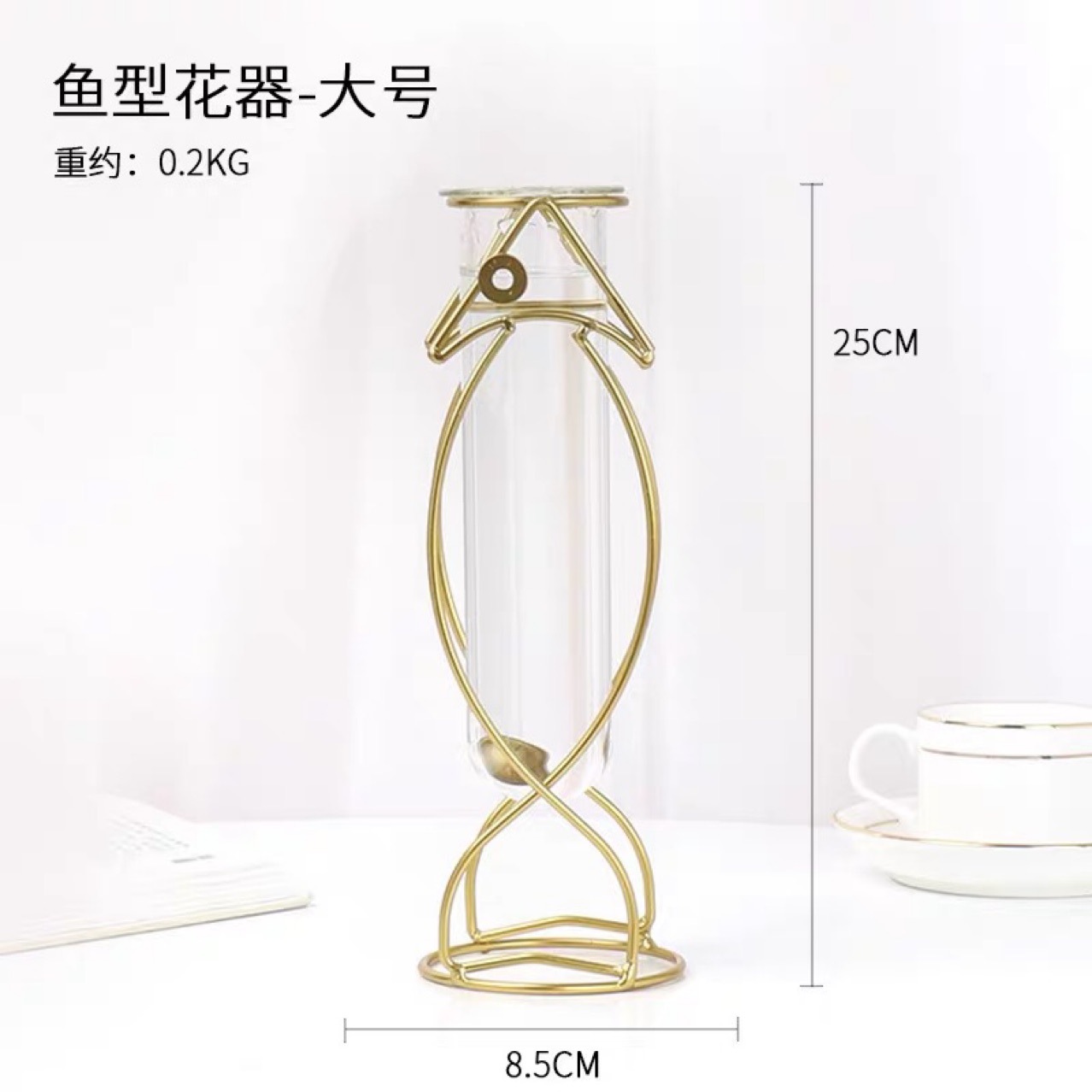 북유럽 스타일 단철 금붕어 모양 수경 꽃병 장식품 홈 장식 식물 수경 용기 녹색 장미 용품스토어 가기
