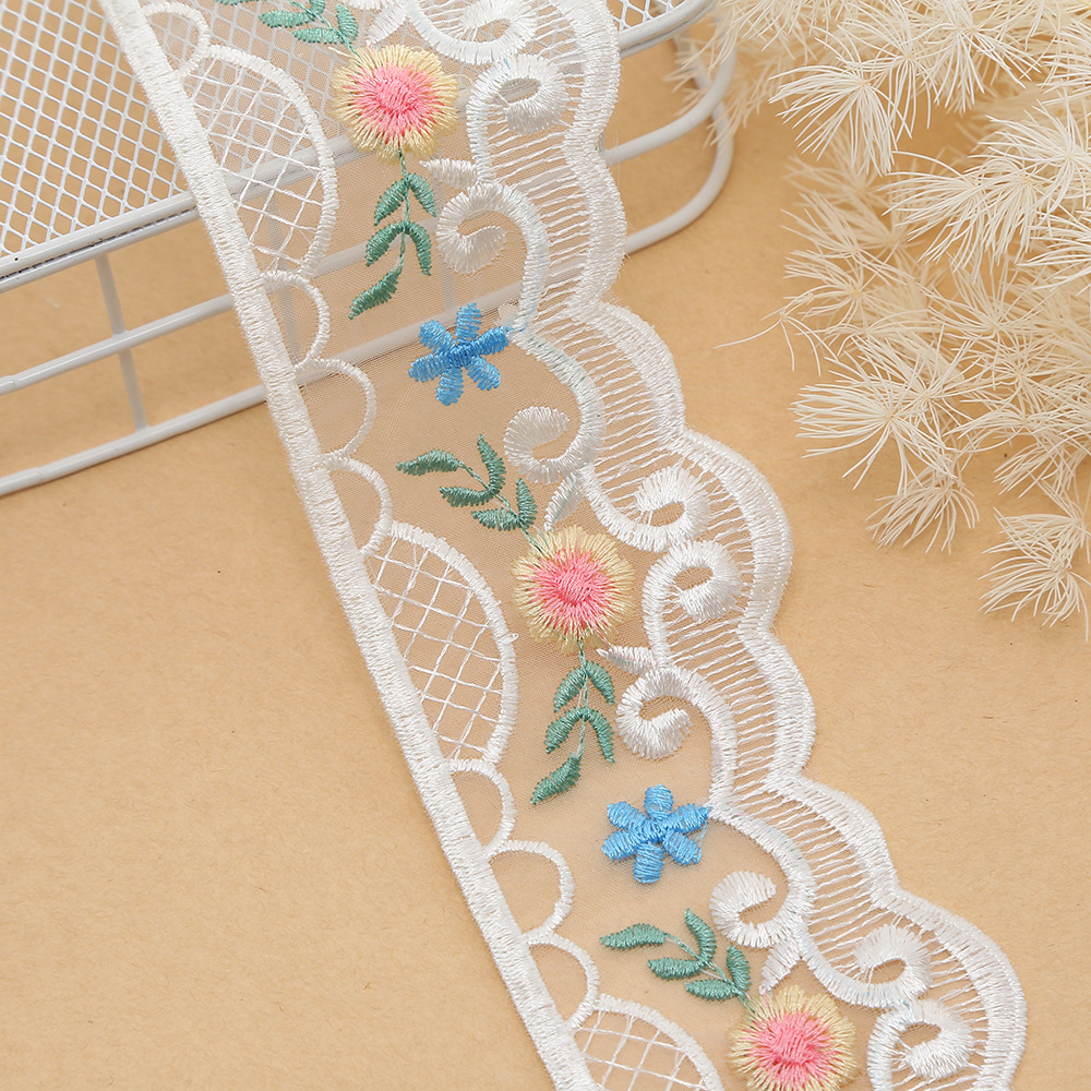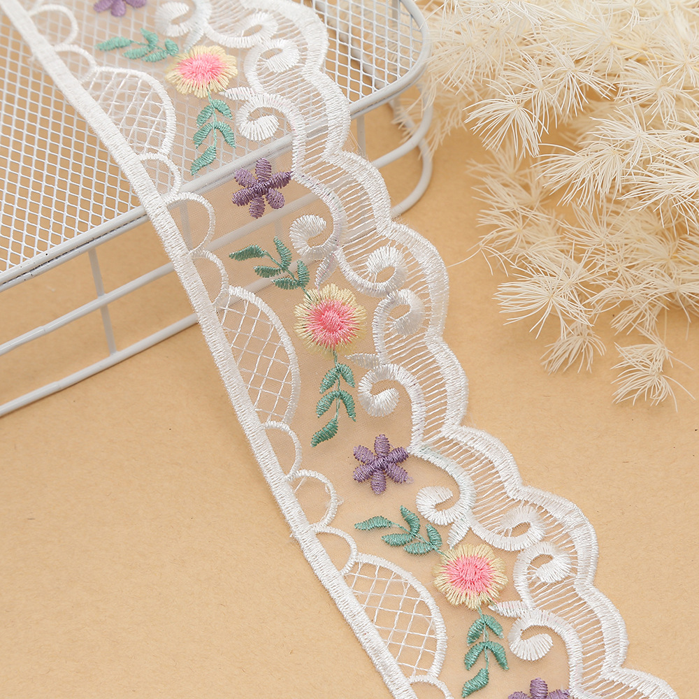 6.5cm organza 컬러 폴리 에스테르 실크 레이스 DIY 수제 민족 스타일 의류 커튼 장식 자수 레이스