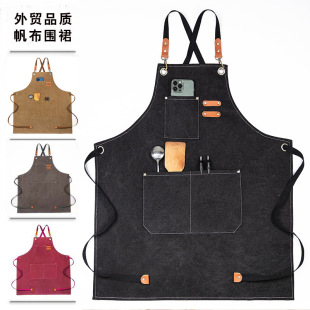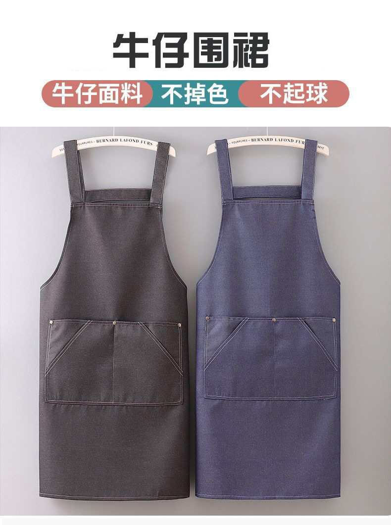 가정용 주방, 커피숍 작업복, 집안일을 위한 특수 데님 캔버스 앞치마, 튼튼하고 방수 및 방오 기능