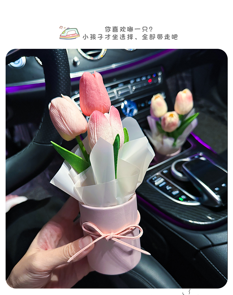 자동차 장착 튤립 부케, 바람 자동차 센터 콘솔 장식품 온라인 유명 자동차 인테리어 장식 시뮬레이션 틈새 선물 반얀스토어 가기
