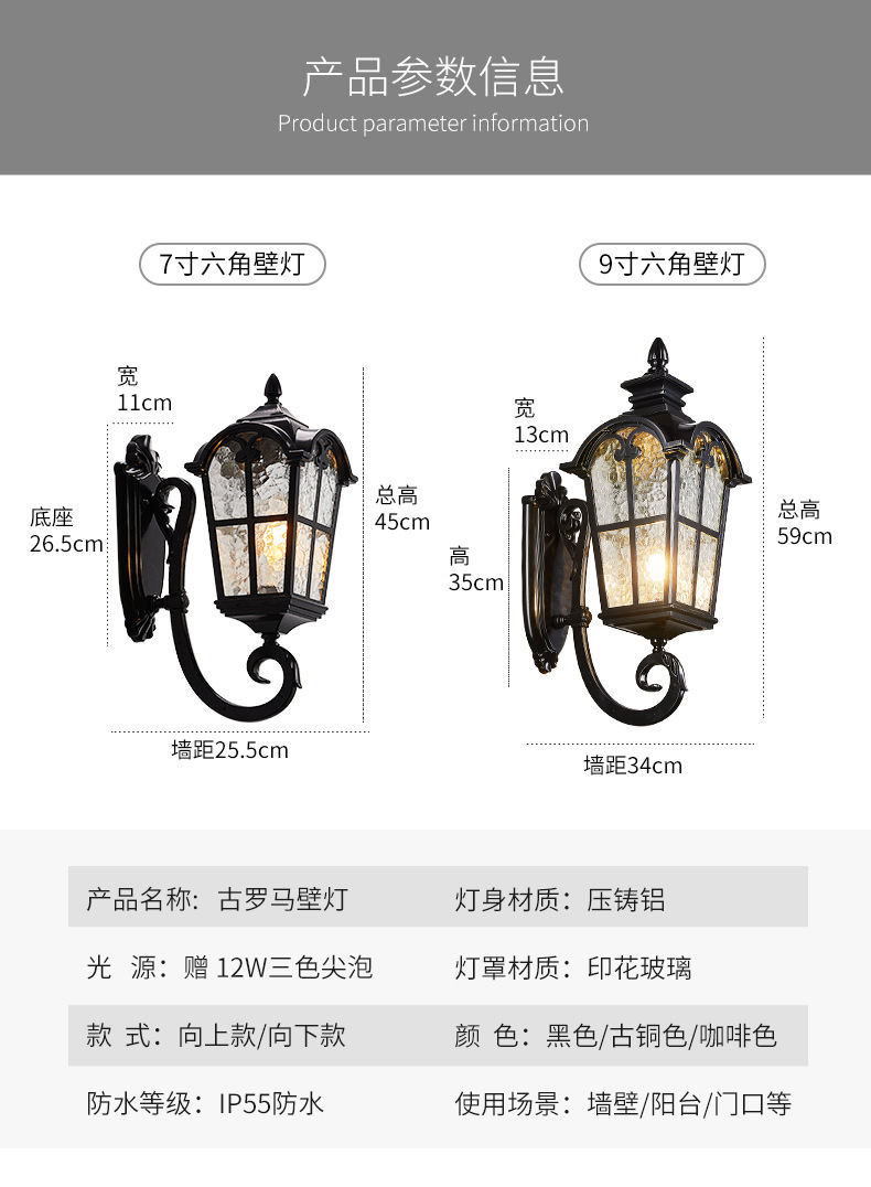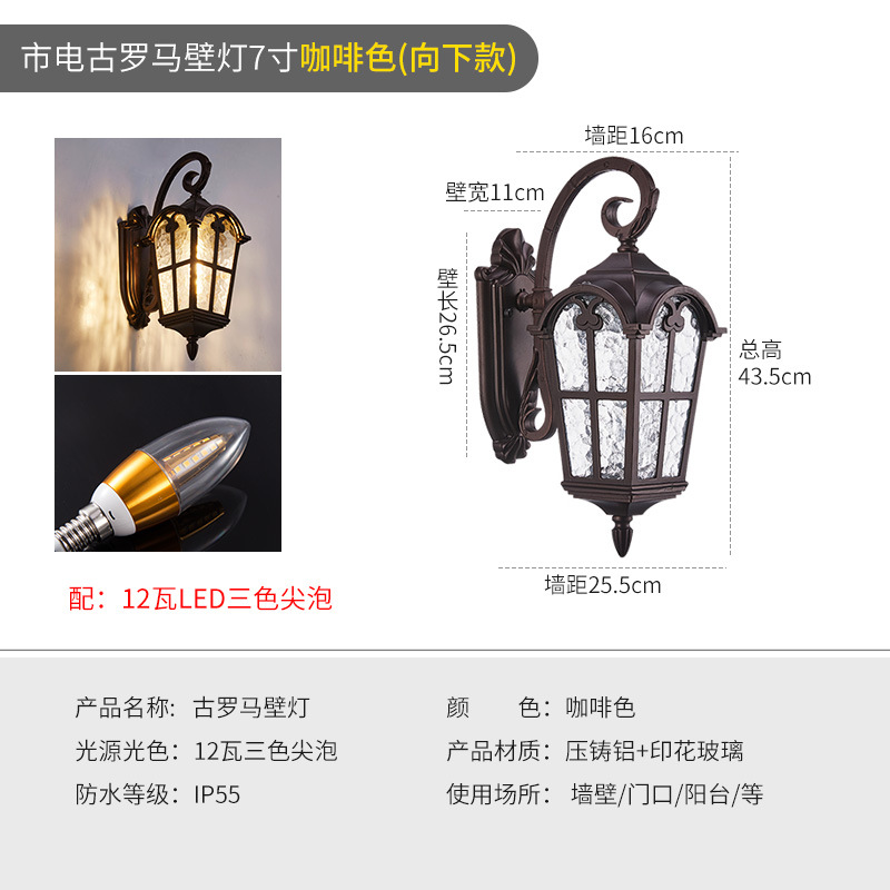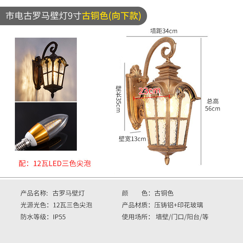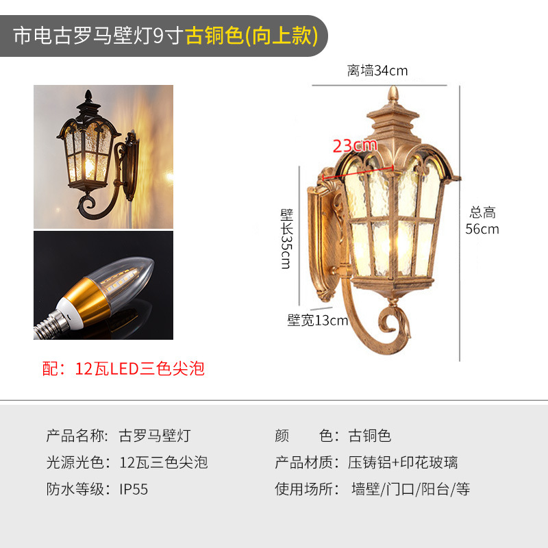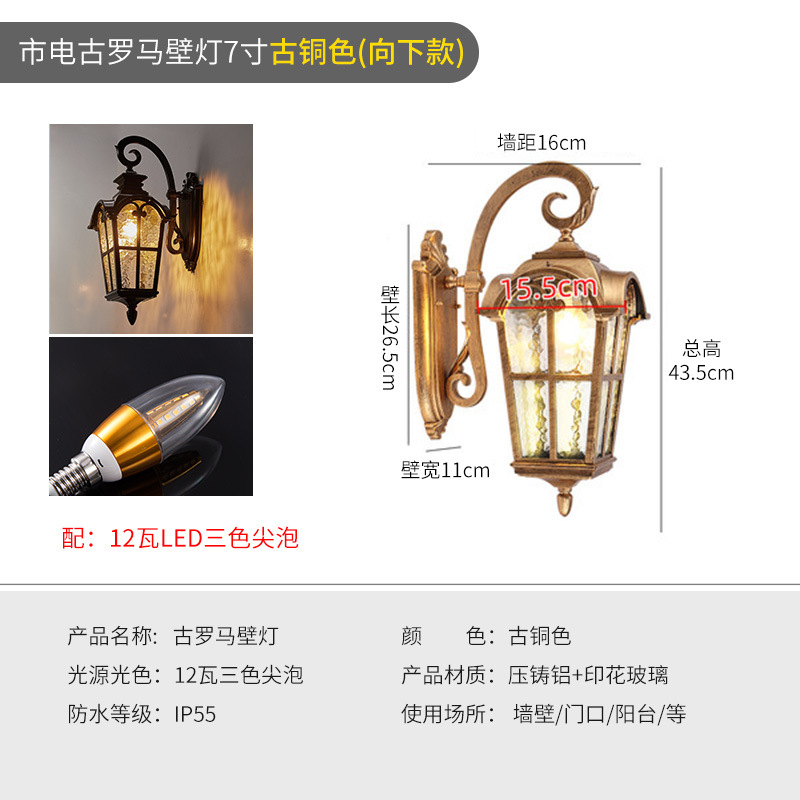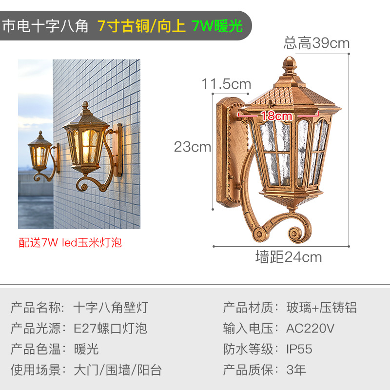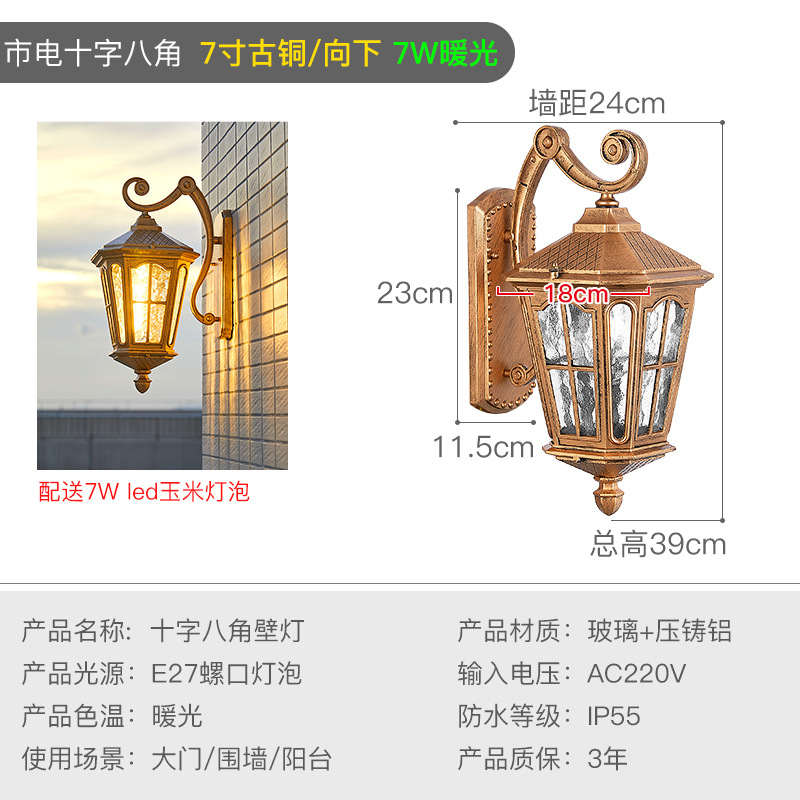 야외 벽 램프 미국 목가적 인 외부 벽 램프 가정용 정원 램프 유럽 야외 빌라 방수 발코니 벽 램프