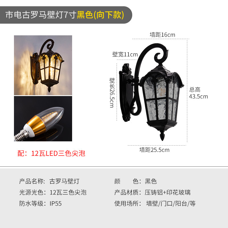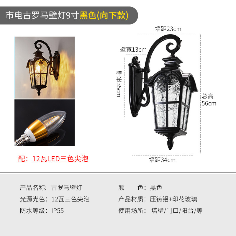 • 9 "아래로 고대 로마 벽 램프/블랙