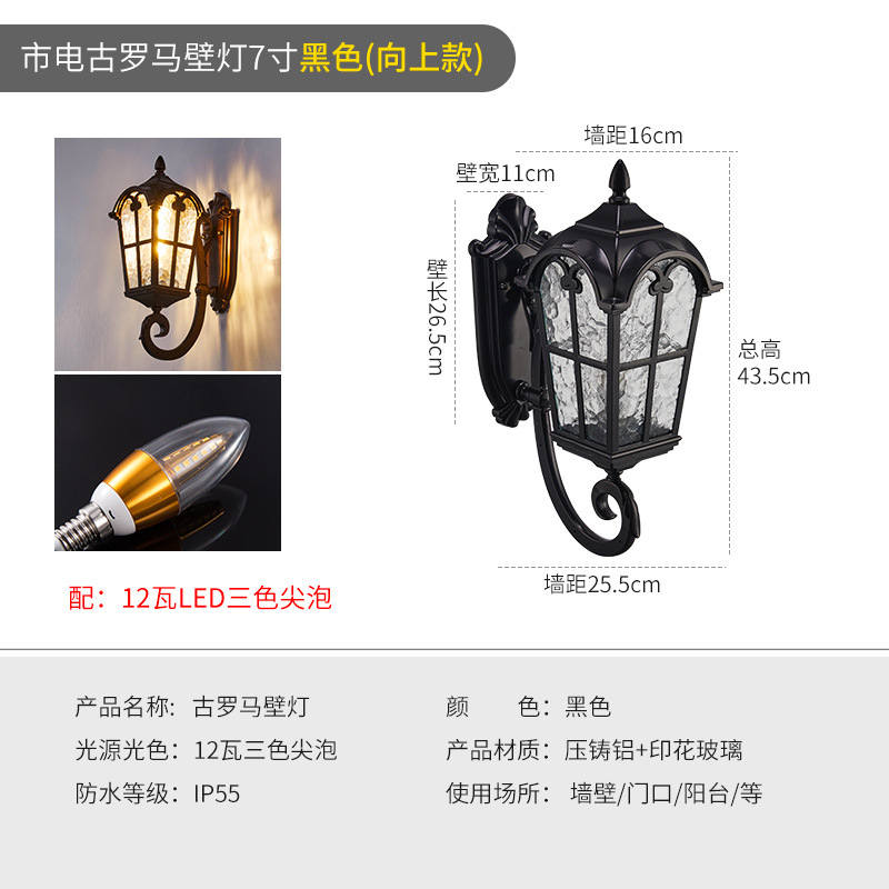 • 7 인치 최대 고대 로마 벽 램프/블랙