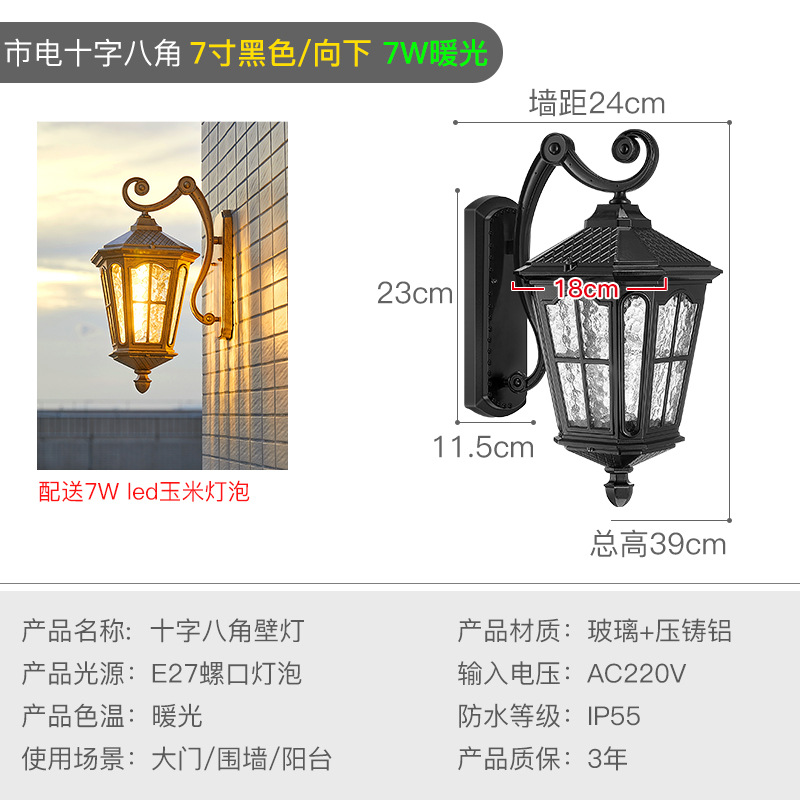 • 7 인치 크로스 팔각형 벽 램프/블랙