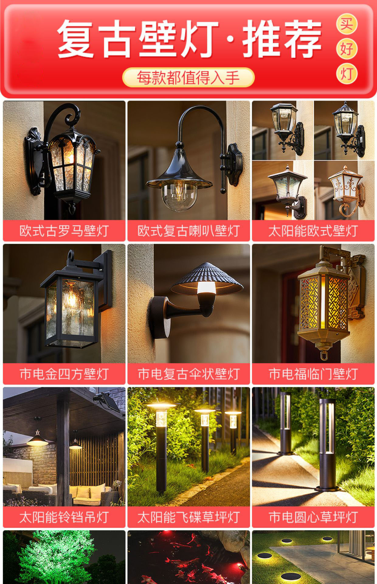 야외 벽 램프 미국 목가적 인 외부 벽 램프 가정용 정원 램프 유럽 야외 빌라 방수 발코니 벽 램프스토어 가기