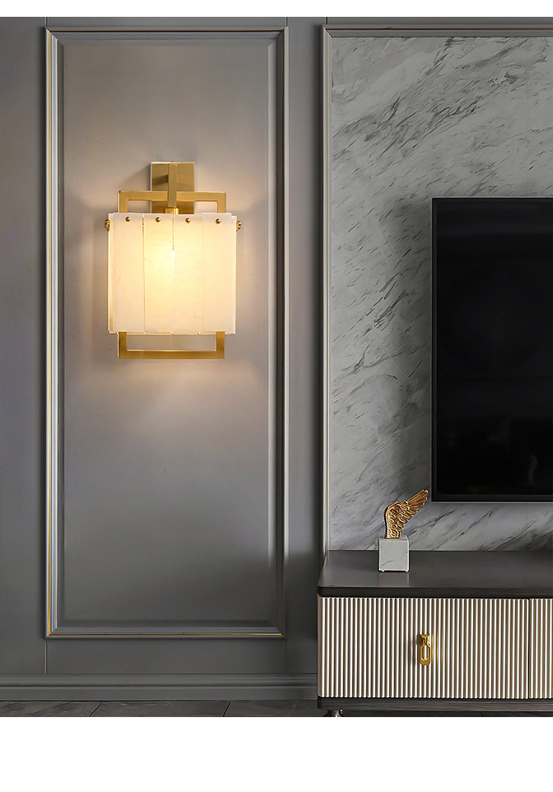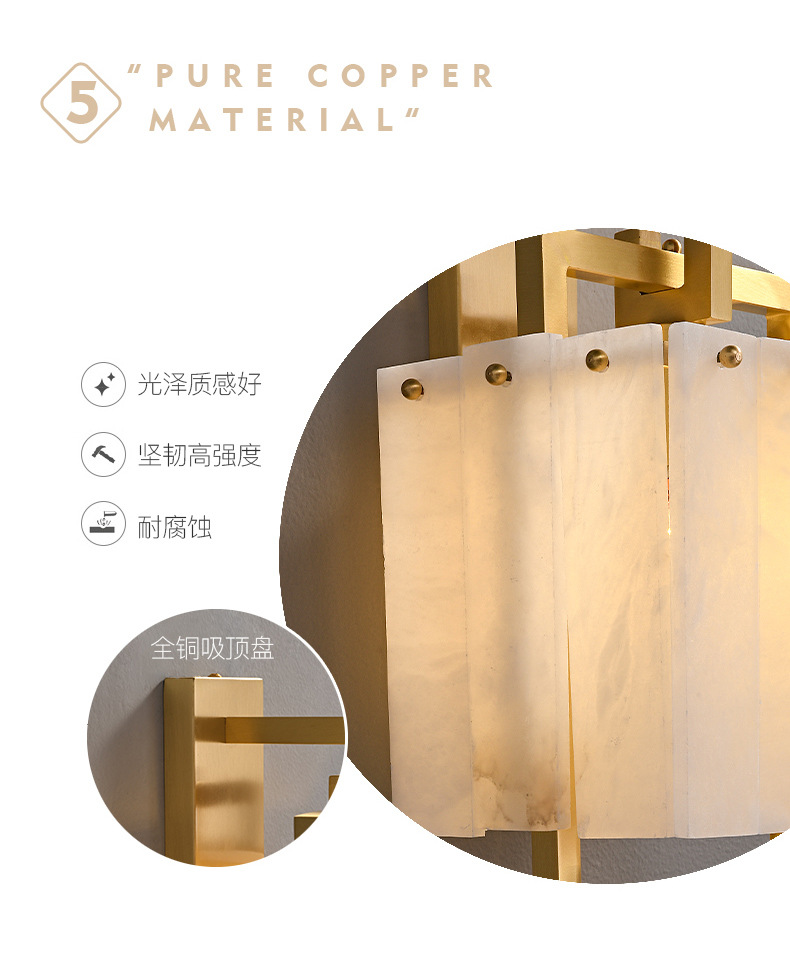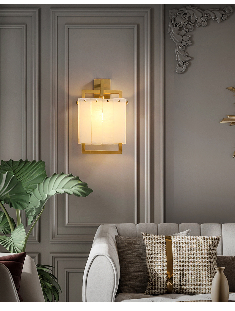 새로운 중국 스타일 빛 럭셔리 모든 구리 돌 거실 TV 배경 벽 램프 아트 창조적 인 인터넷 연예인 마스터 침대 옆 램프