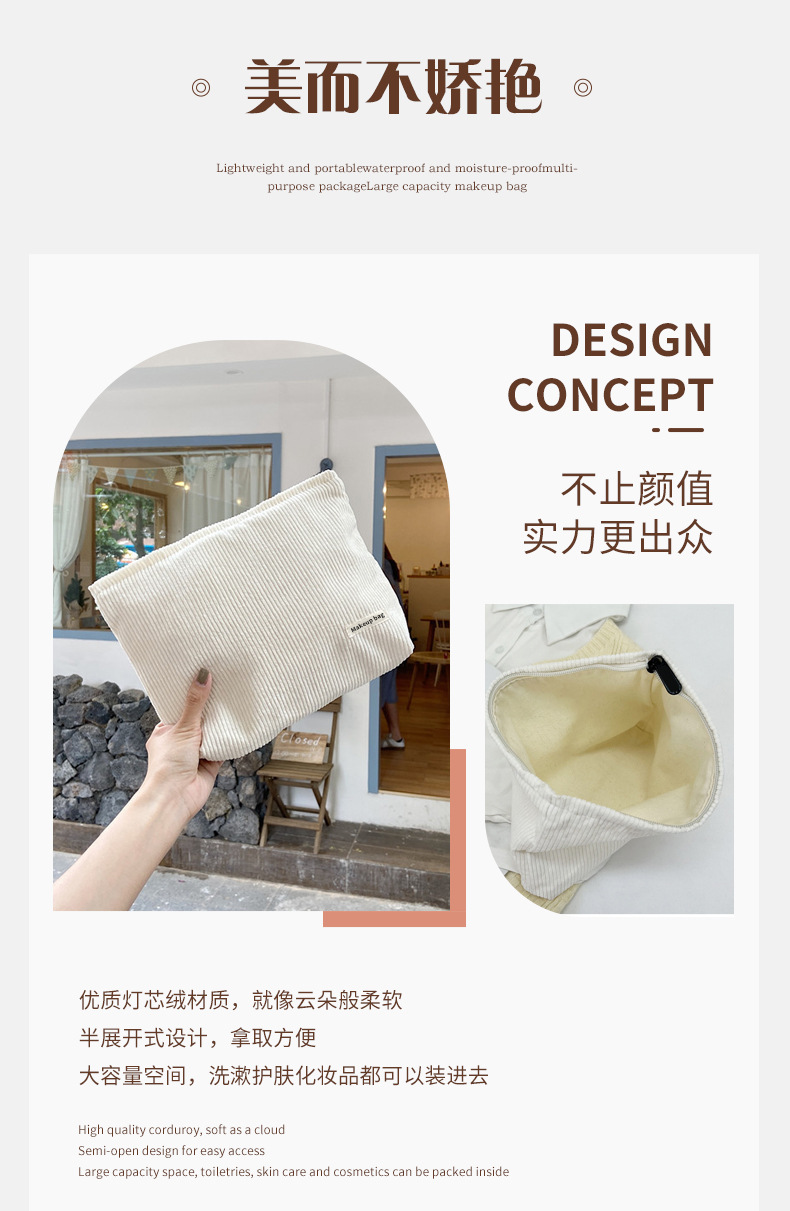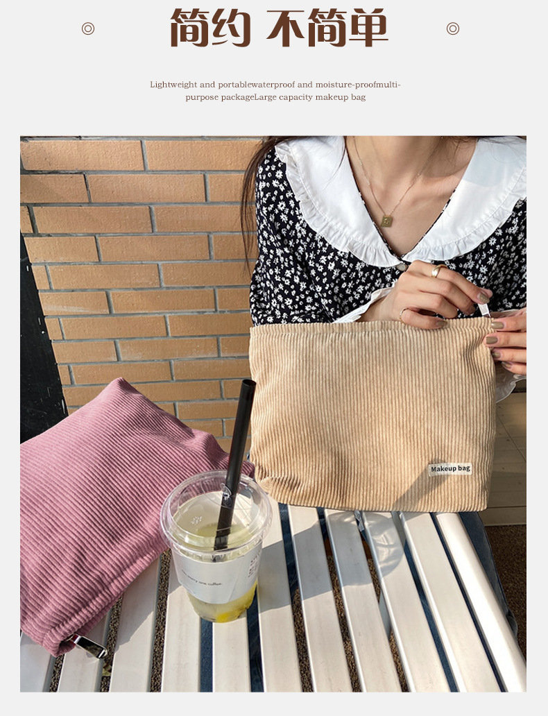 가정용 두꺼운 코듀로이 화장품 가방 여성의 대용량 여행 워시 백 립스틱 변경 보관 편리한 핸드 백