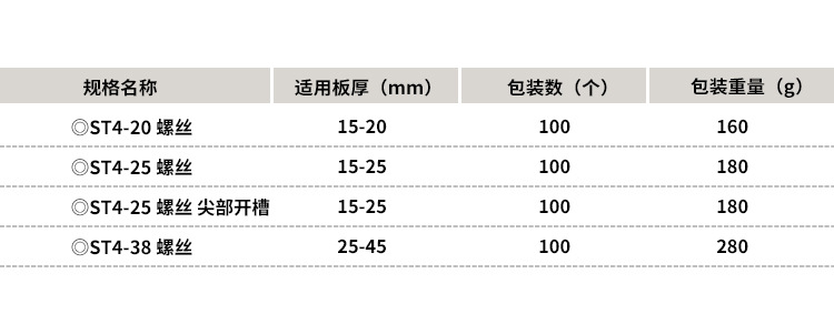 • 100 개의 ST4-38 나사