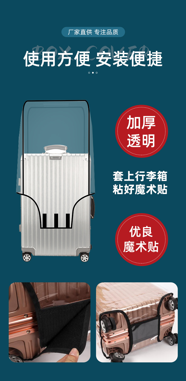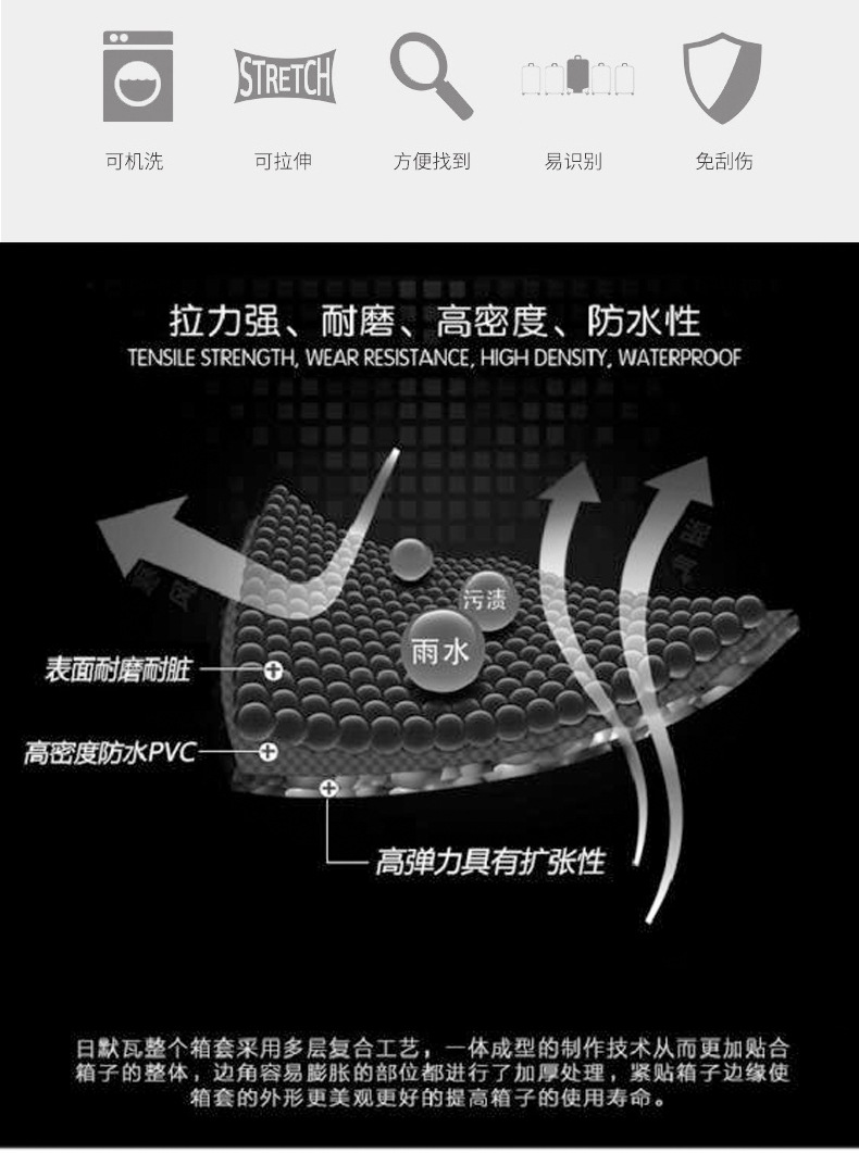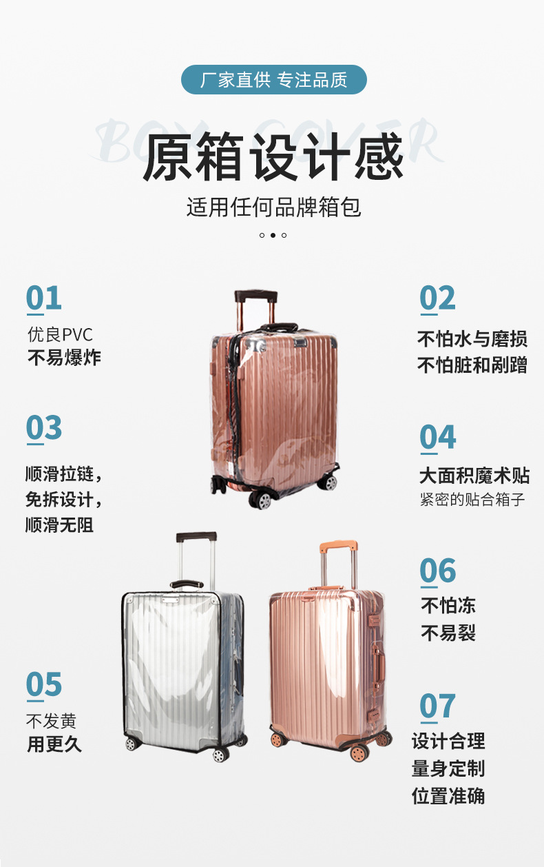 재고 PVC 투명 가방 방수 지퍼 20/24 인치 두께의 내마모성 수하물 케이스 수하물 케이스 보호 커버