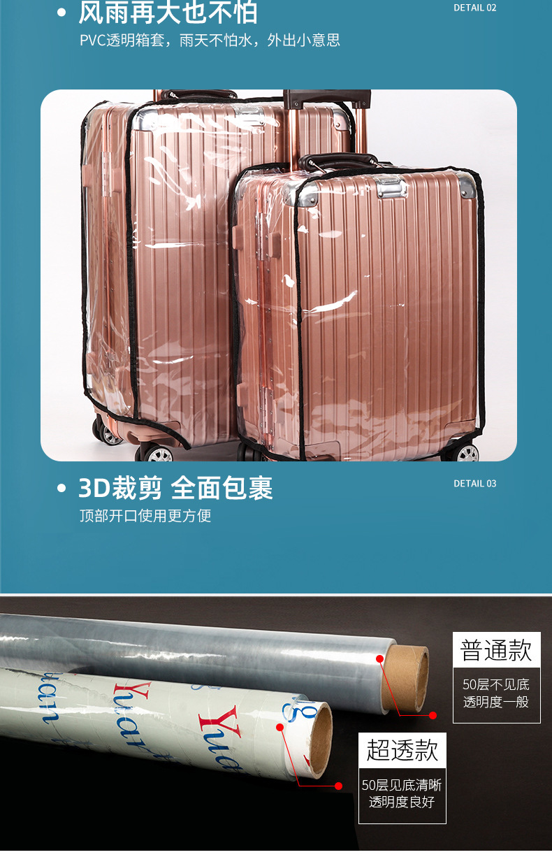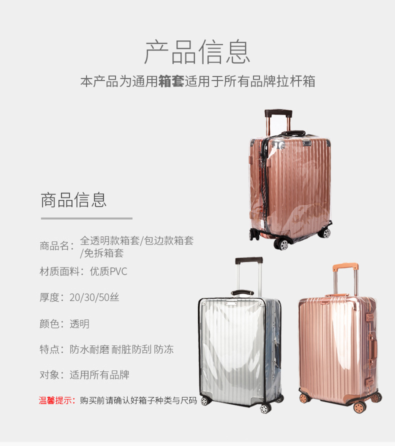 재고 PVC 투명 가방 방수 지퍼 20/24 인치 두께의 내마모성 수하물 케이스 수하물 케이스 보호 커버스토어 가기