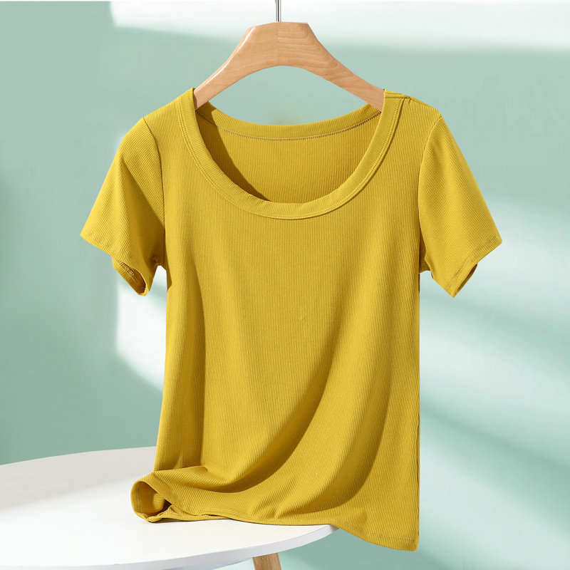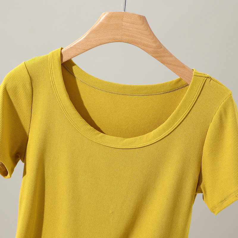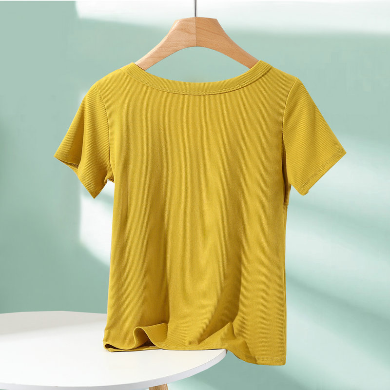 모달 반팔 티셔츠 여성용 여름 아우터 니트 스레드 크루 넥베이스 셔츠 플러스 사이즈 내부 착용 단색 얇은 탑