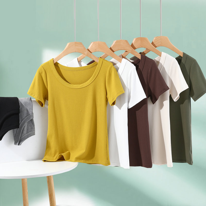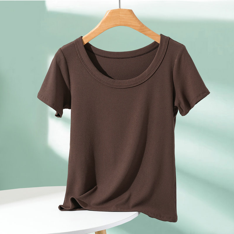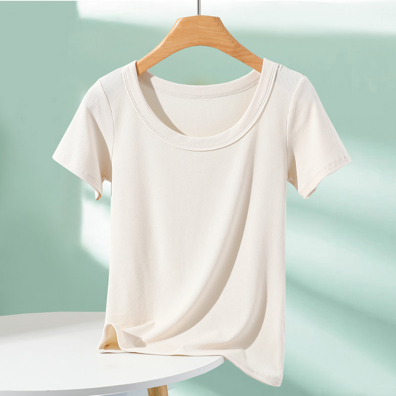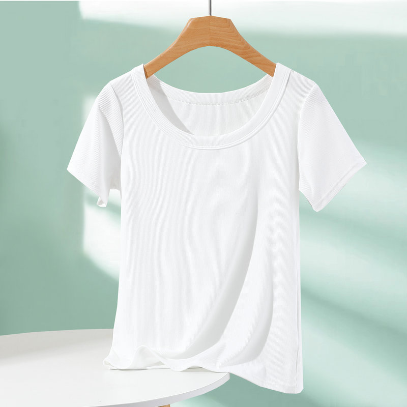 모달 반팔 티셔츠 여성용 여름 아우터 니트 스레드 크루 넥베이스 셔츠 플러스 사이즈 내부 착용 단색 얇은 탑스토어 가기