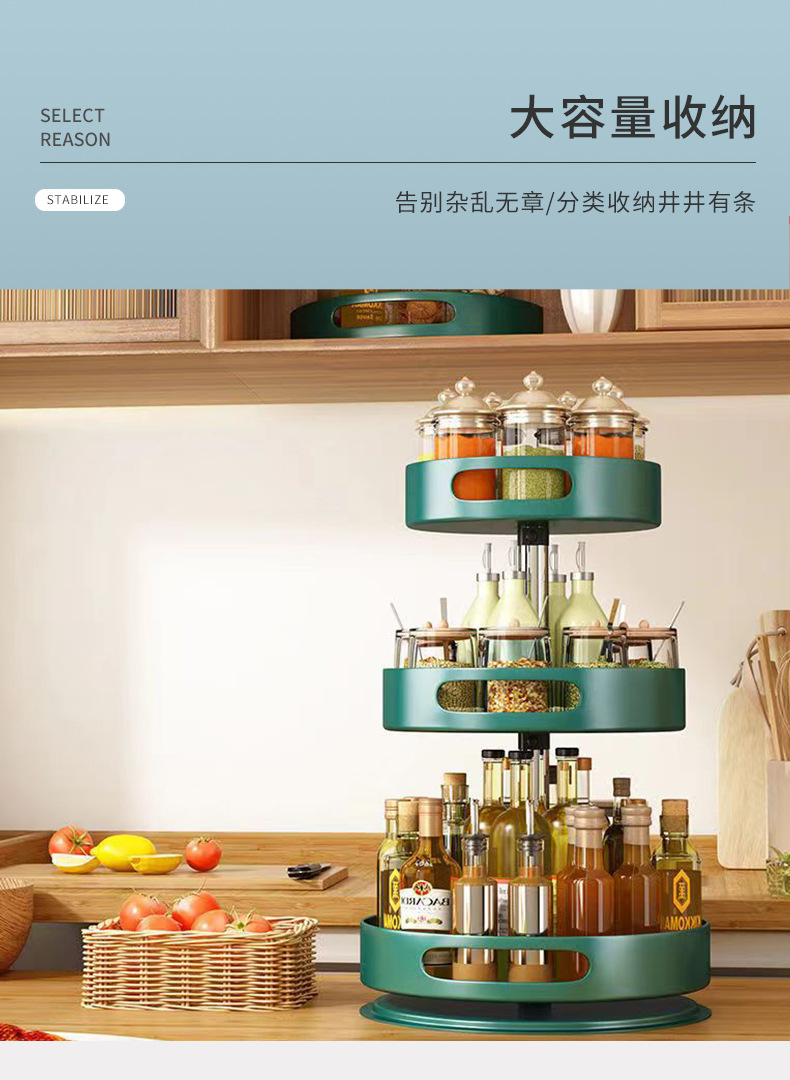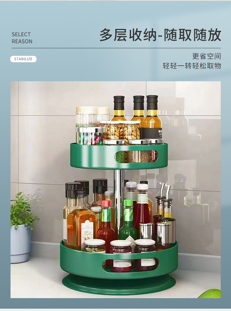 주방 재료 저장 상자 회전 양념 트레이 저장 랙 테이블 탑 오일 소금 소스 및 식초 가정용 작은 양념 신스토어 가기