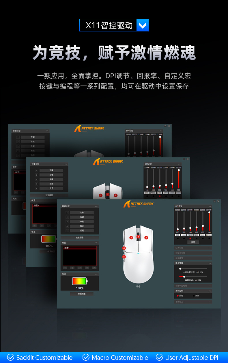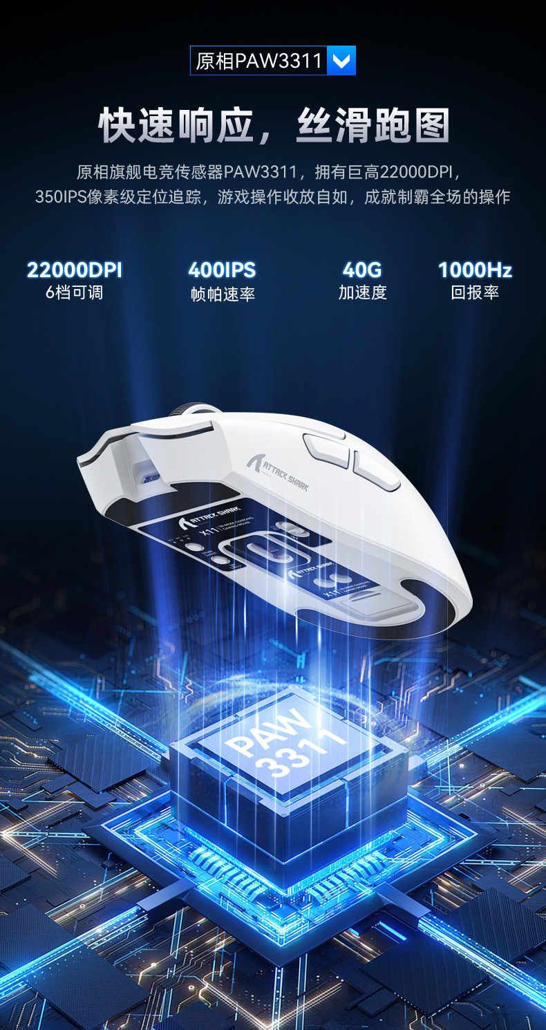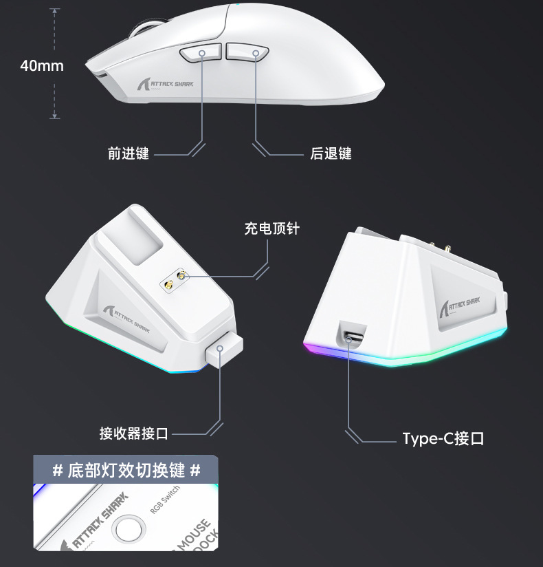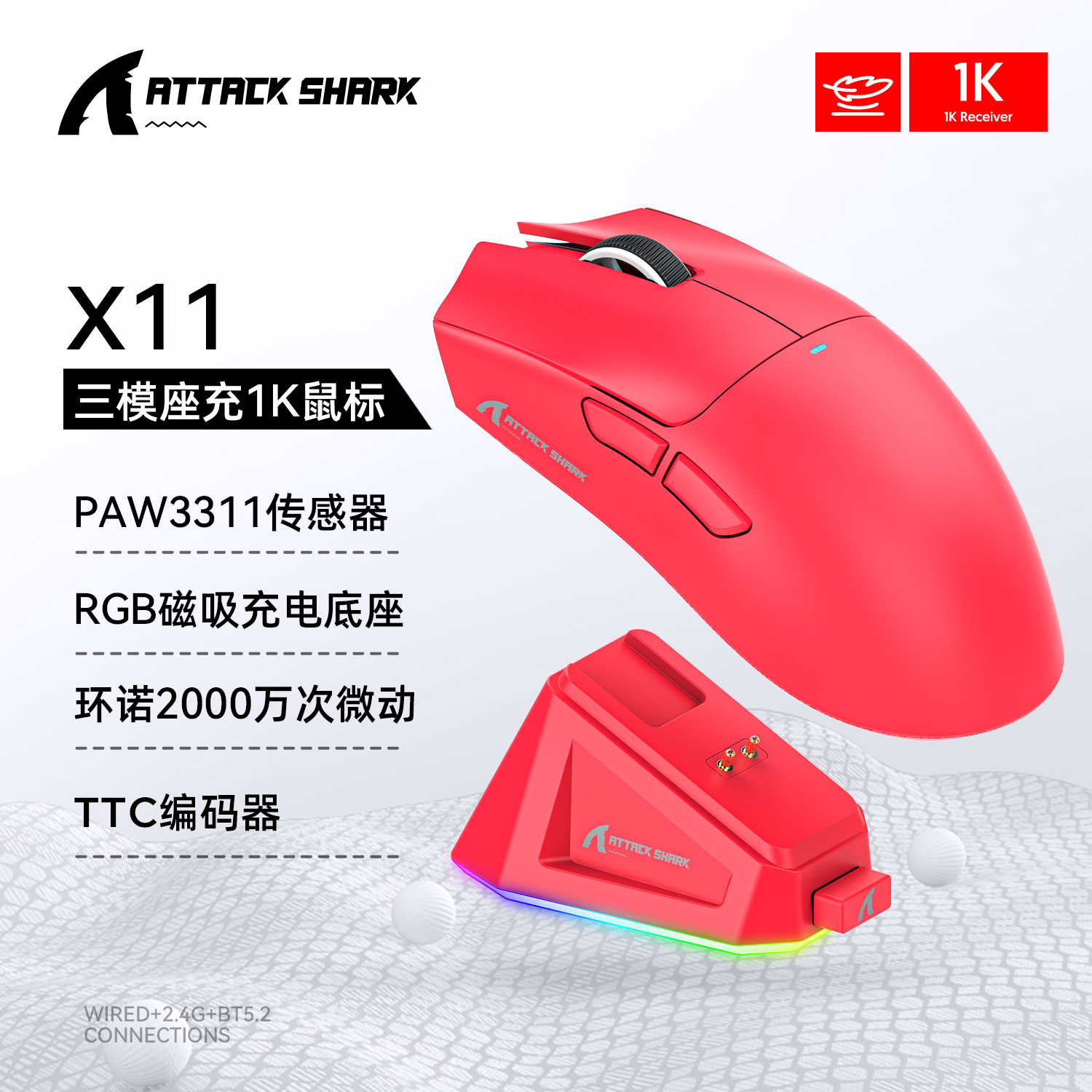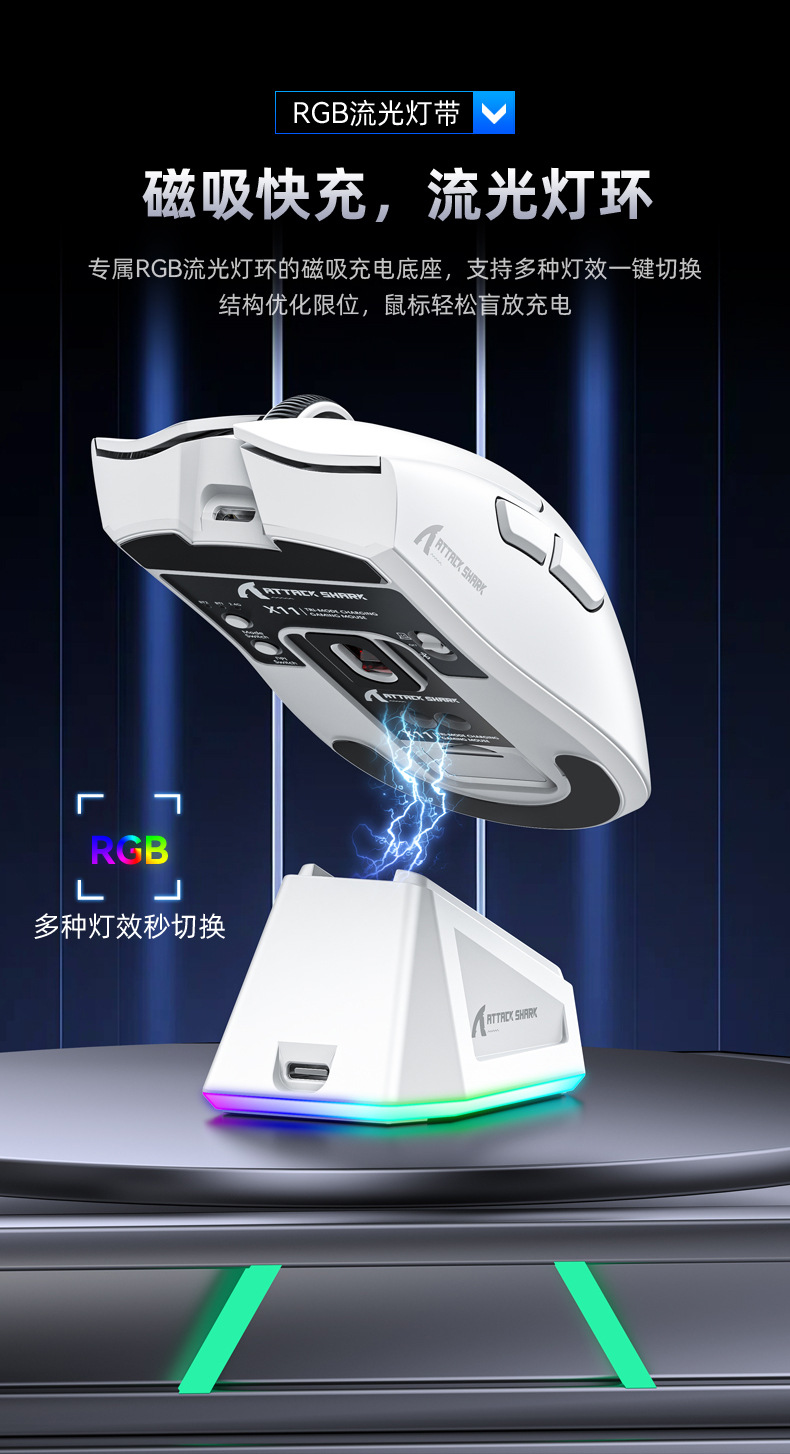 攻击鲨X11带RGB无线充电底座鼠标