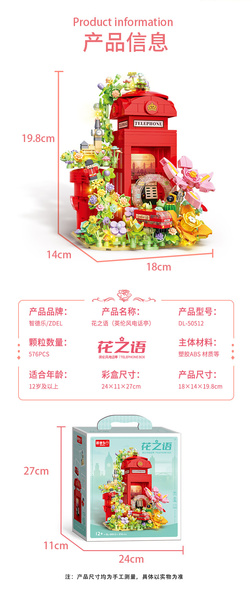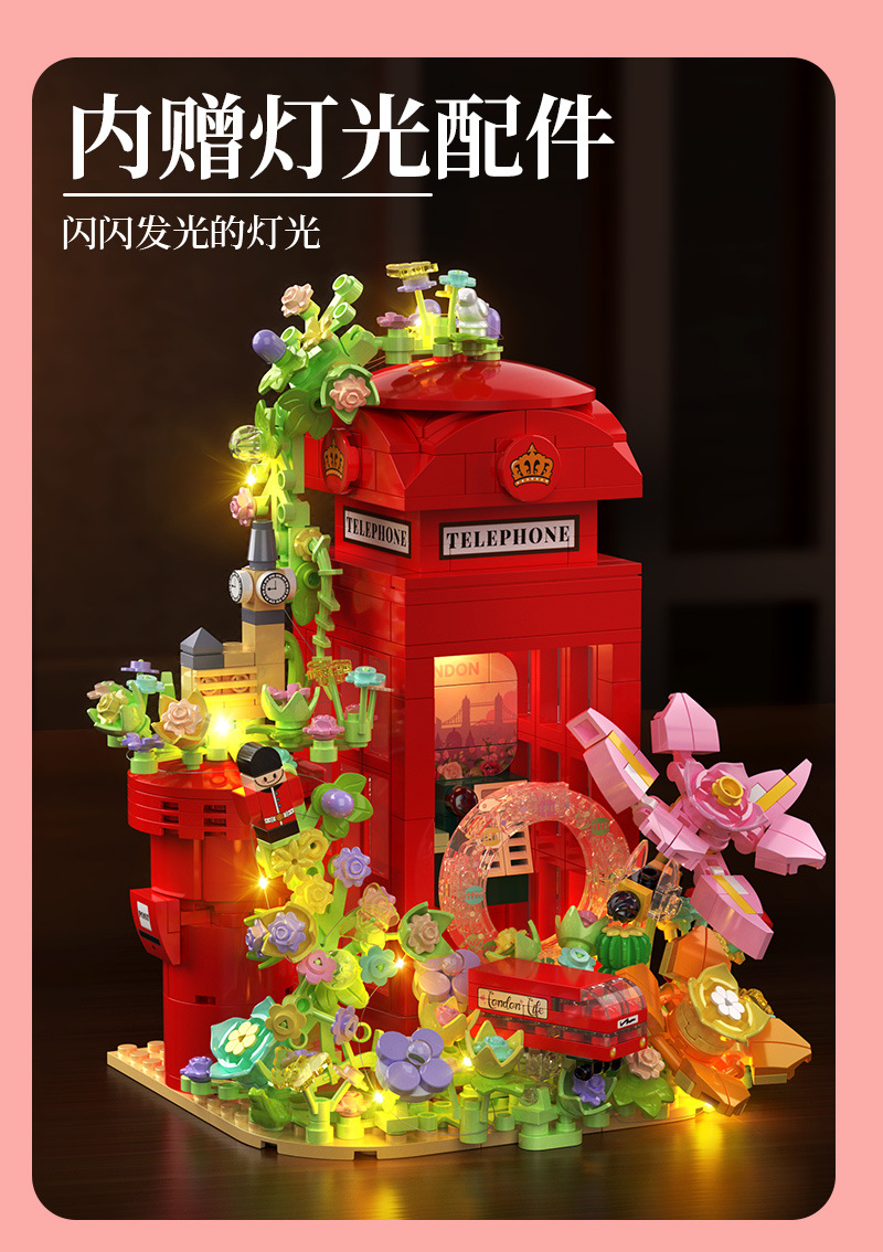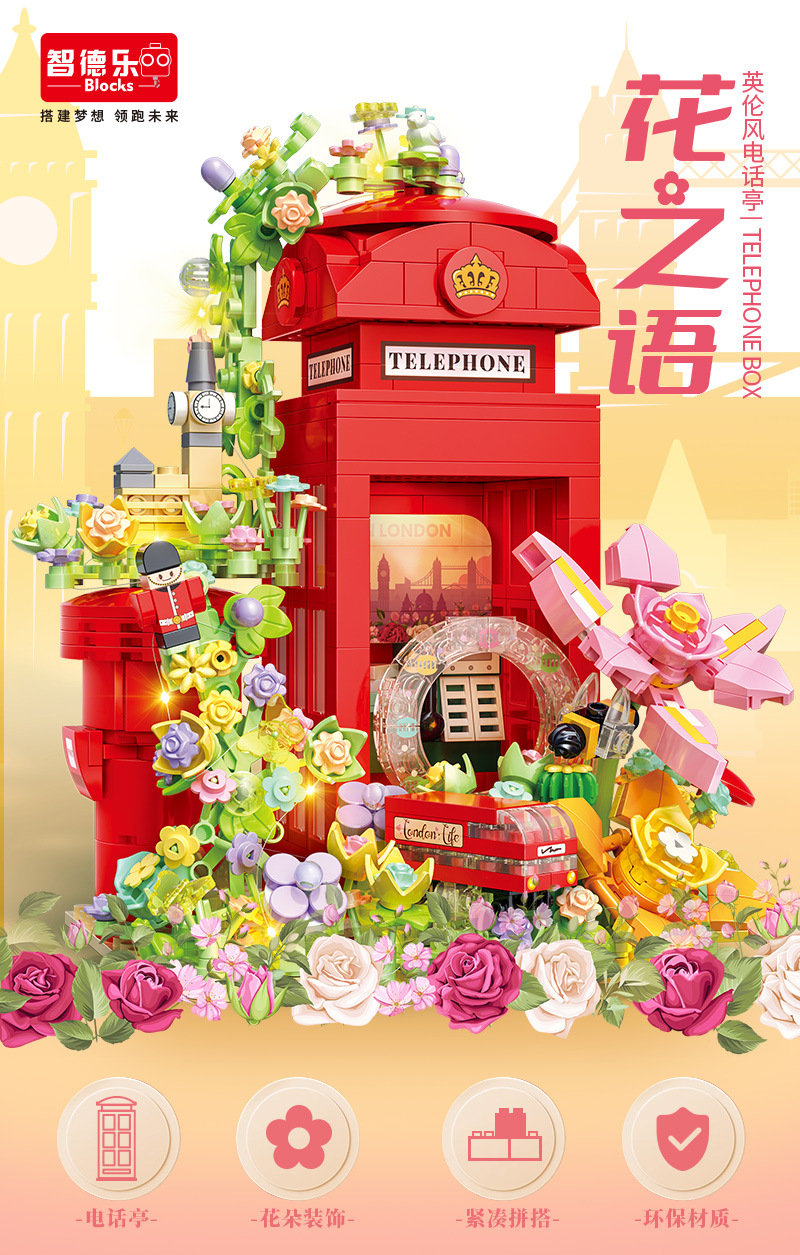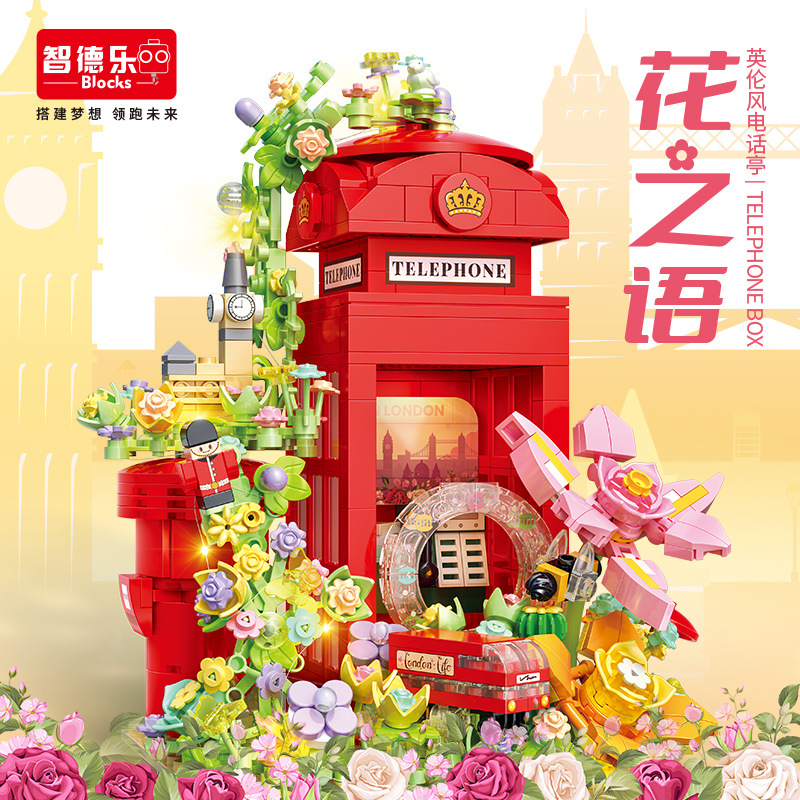 Zhide 음악 꽃 언어 50512 생일 선물 영국 복고풍 모방 전화 부스 퍼즐 빌딩 블록 조립 장난감스토어 가기