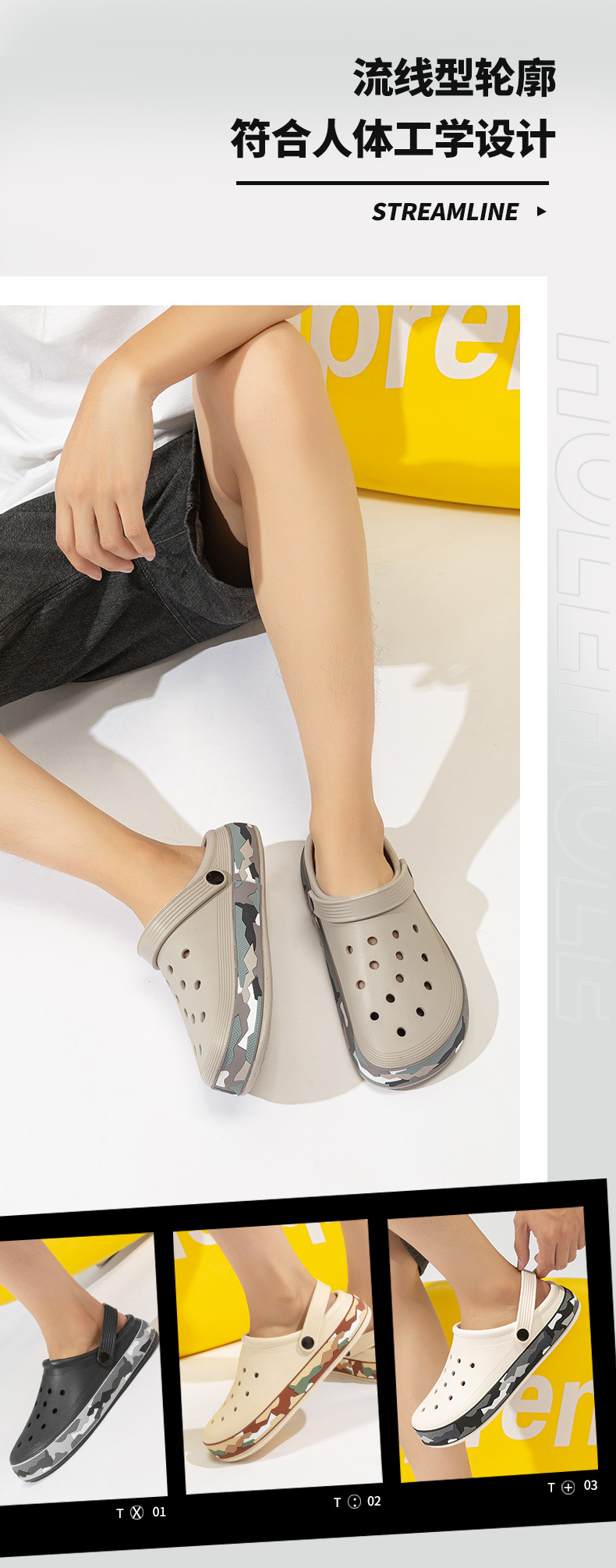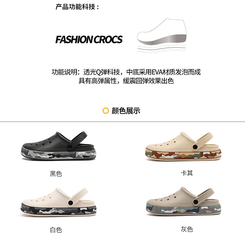 여름 새로운 국경 위장 구멍 신발 야외 남성용 샌들 플러스 사이즈 커플 비치 슬리퍼