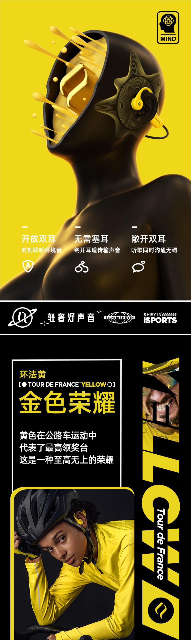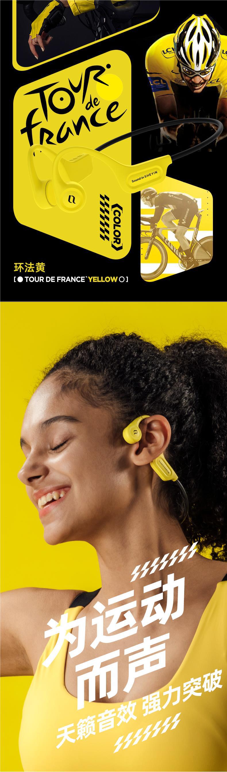 • 업그레이드-투르 드 프랑스 옐로우 [프로 스포츠 세탁 가능★블루투스 V5.3★360 ° 링