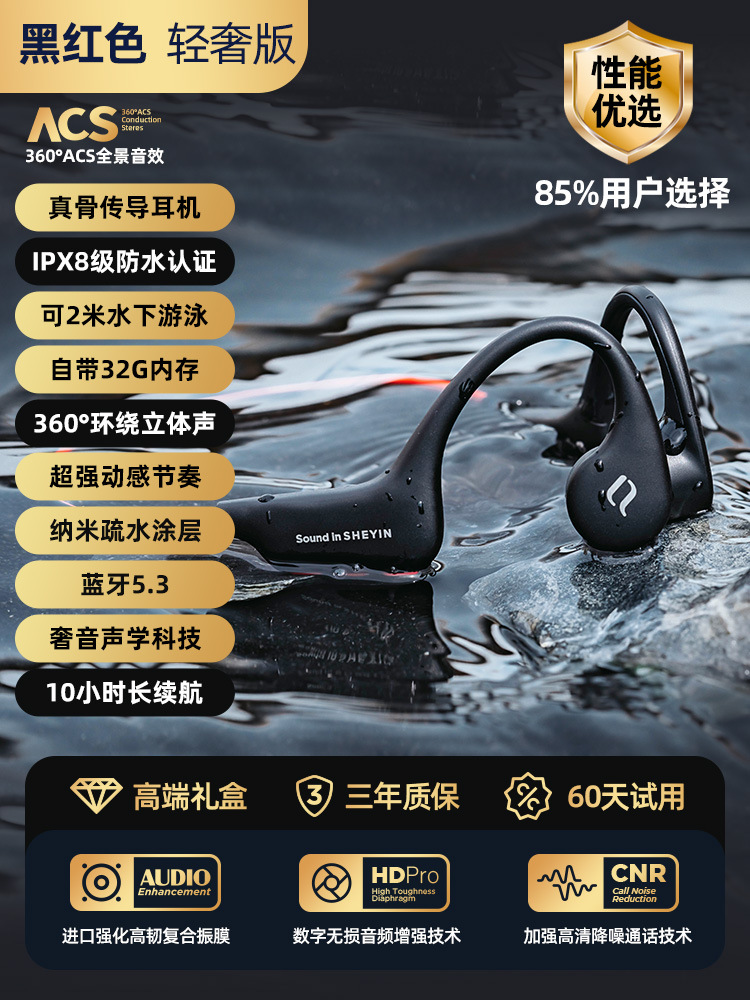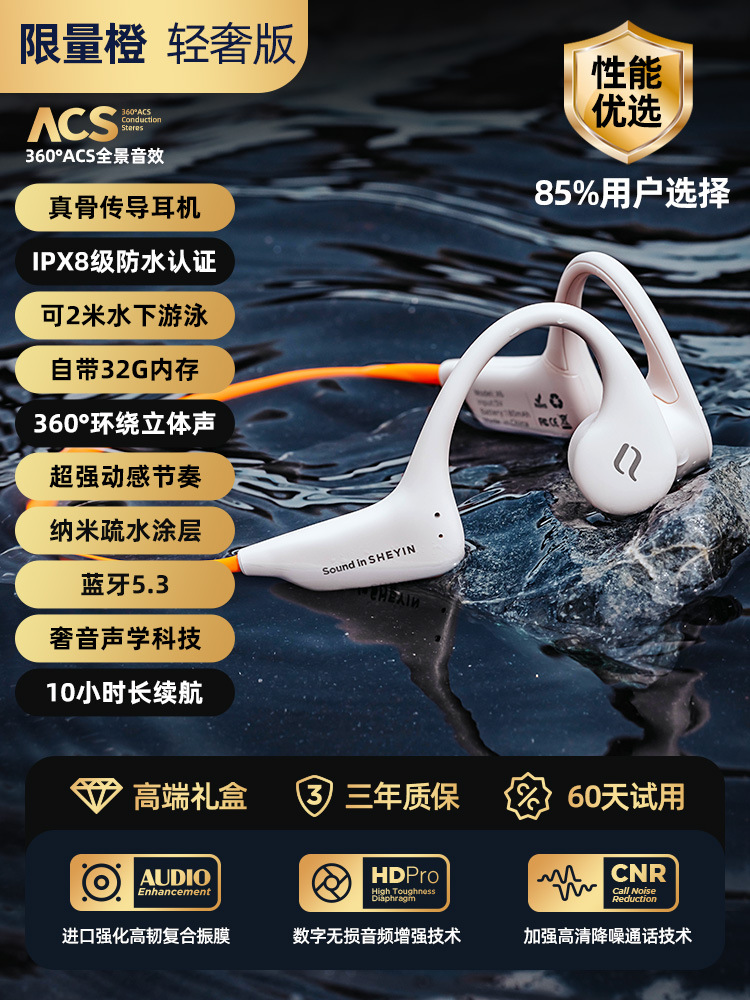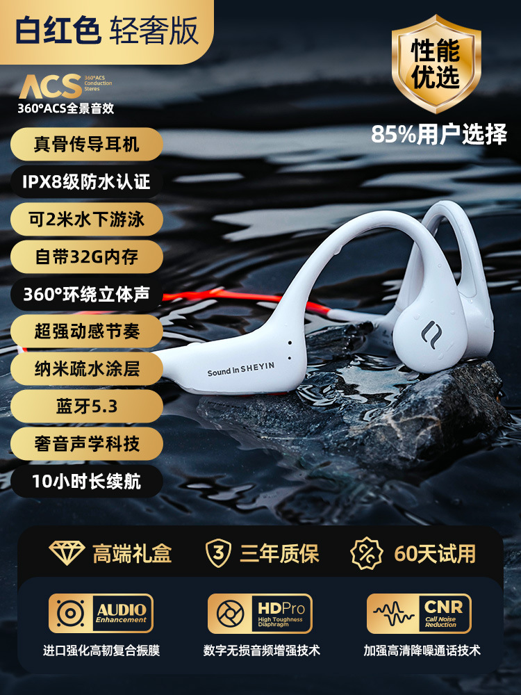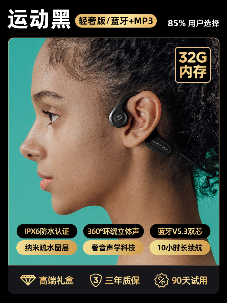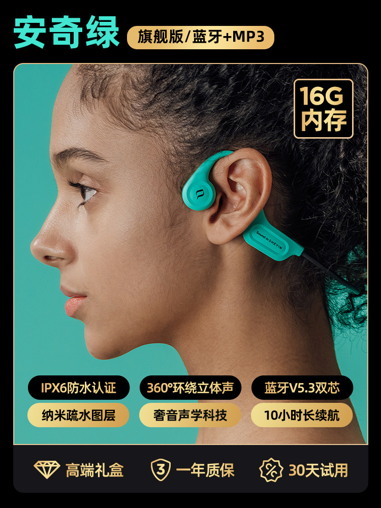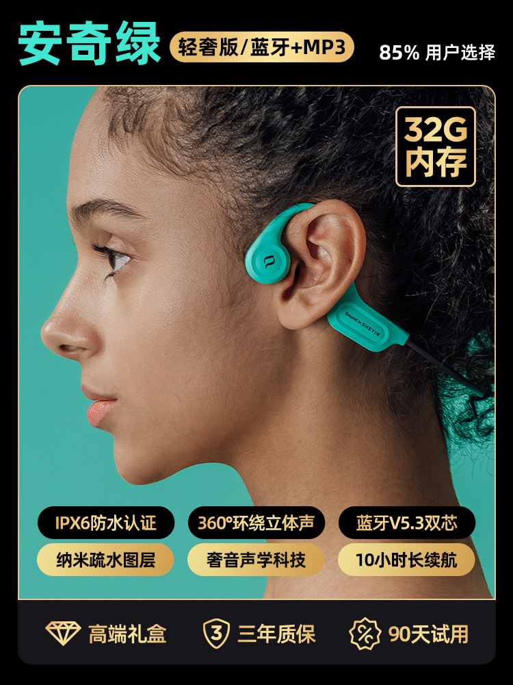럭셔리 사운드 뼈 전도 블루투스 헤드셋 스포츠 달리기 수영 방수 특수 비 귀 무선 목스토어 가기