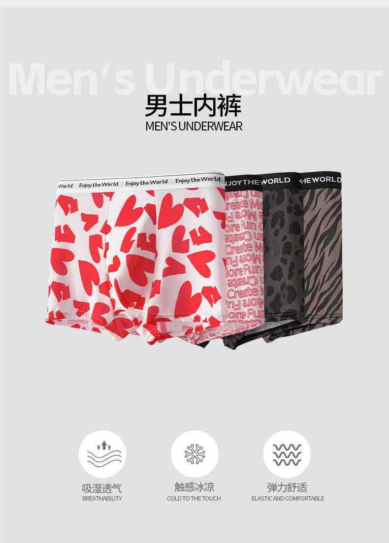 남성용 통기성 큰 사이즈 중간 허리 유럽 사이즈 청소년용 아이스 실크 사각 팬티 남성 속옷 도매스토어 가기