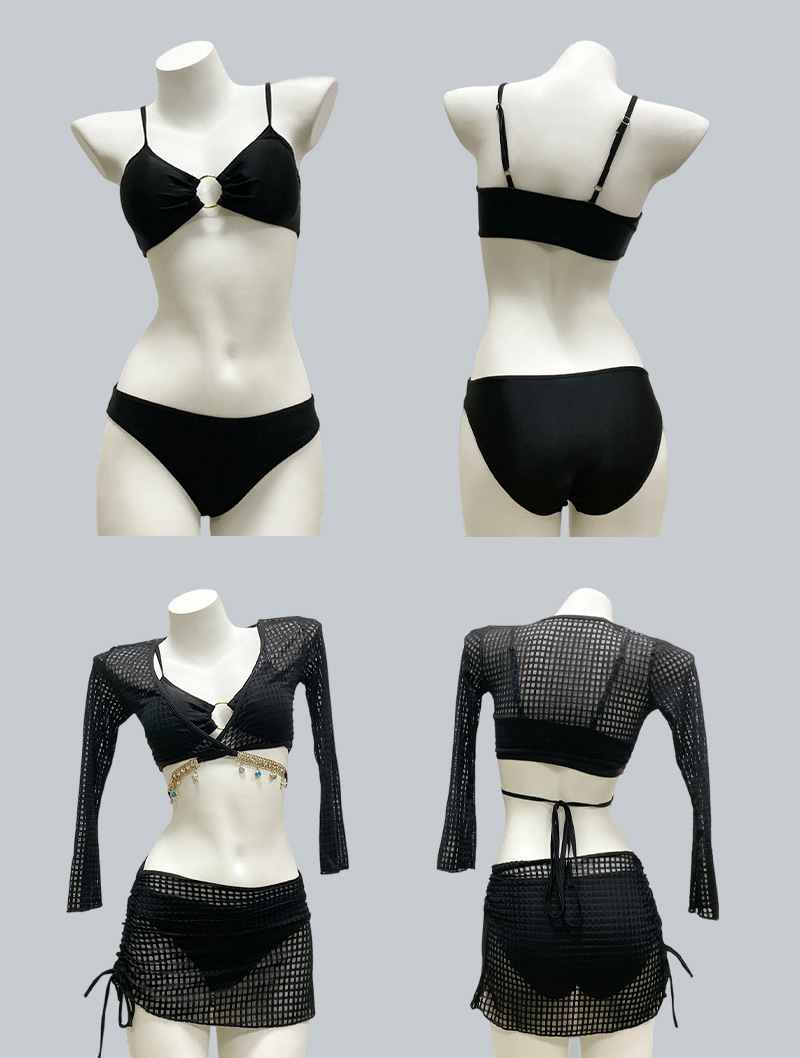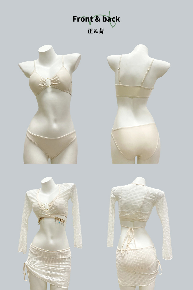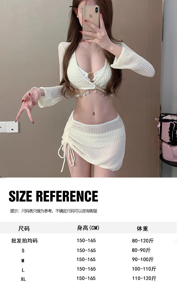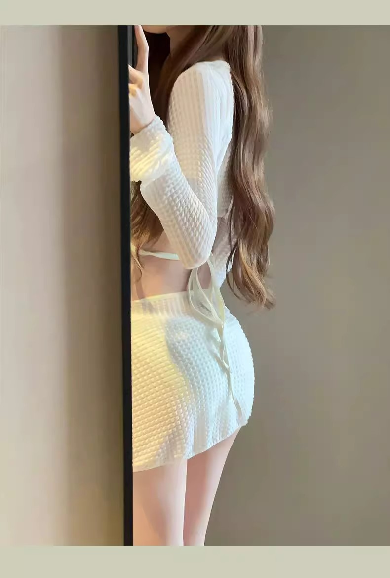 비키니 섹시한 수영복 여성 순수한 욕망 스플릿 4 피스 긴팔 블라우스 스커트 솔리드 컬러 온천 수영복 도매스토어 가기