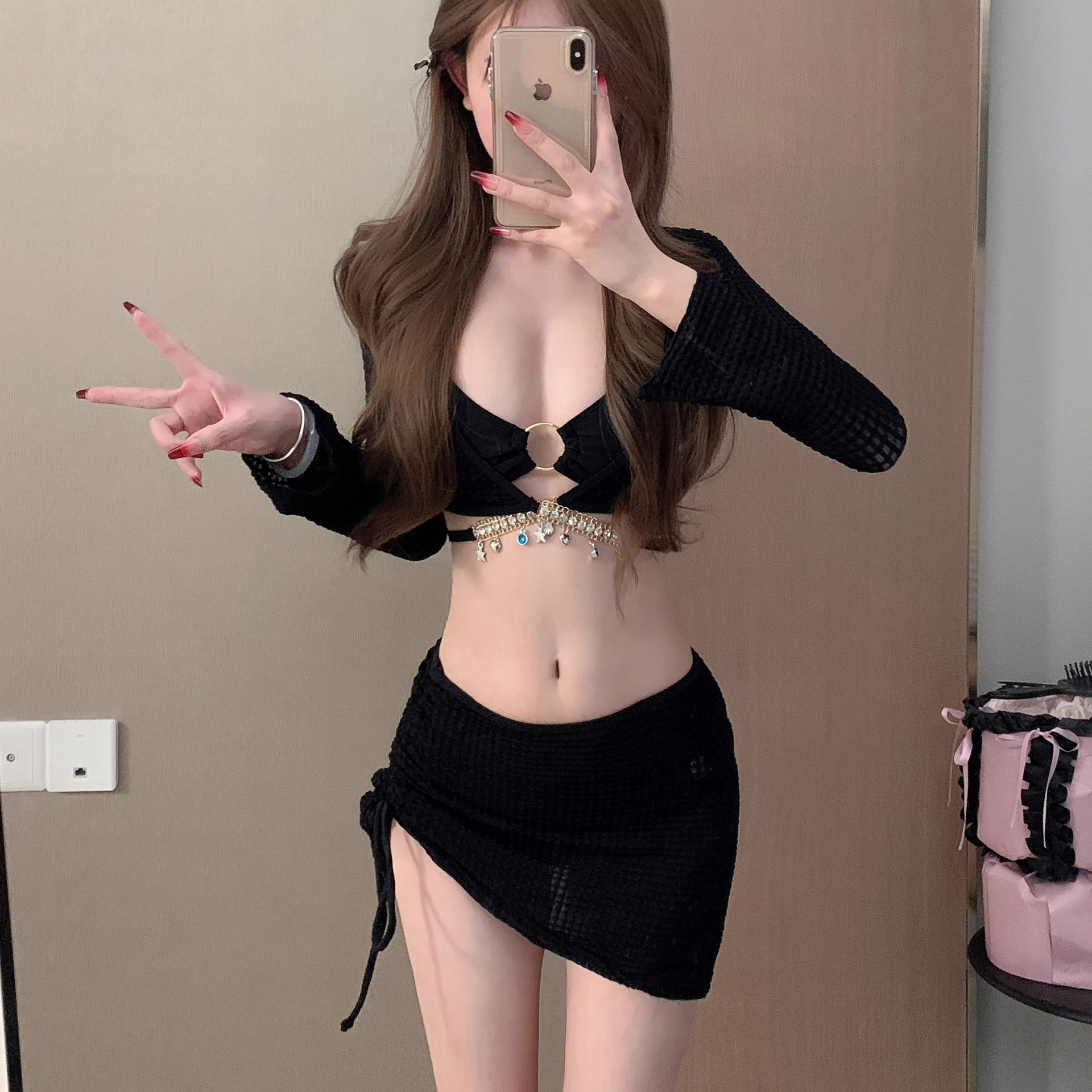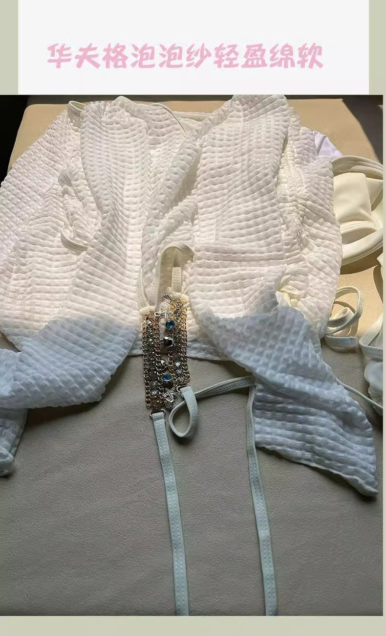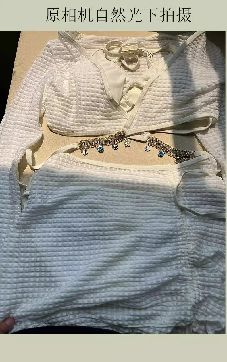 비키니 섹시한 수영복 여성 순수한 욕망 스플릿 4 피스 긴팔 블라우스 스커트 솔리드 컬러 온천 수영복 도매