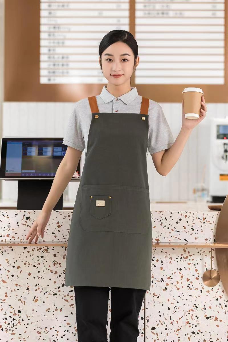 캔버스 앞치마 케이터링 특수 인쇄 로고 인쇄 우유 차 가게 베이킹 꽃 가게 카페 방수 작업 옷 여성스토어 가기