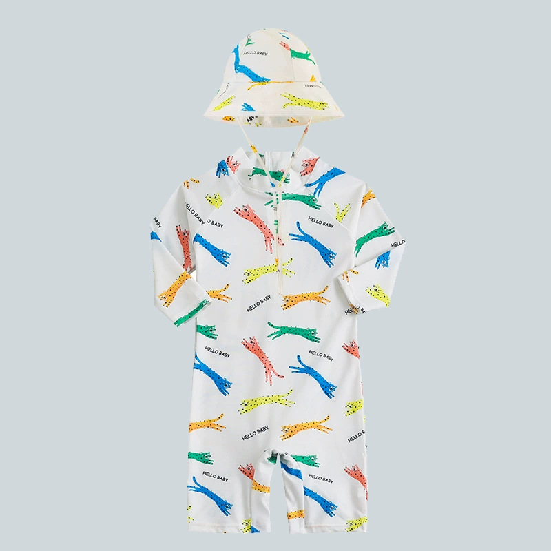 2025 새로운 어린이 원피스 수영복 태양 보호 빠른 건조 아기 아기 서핑 정장 도매 소년과 소녀 수영복