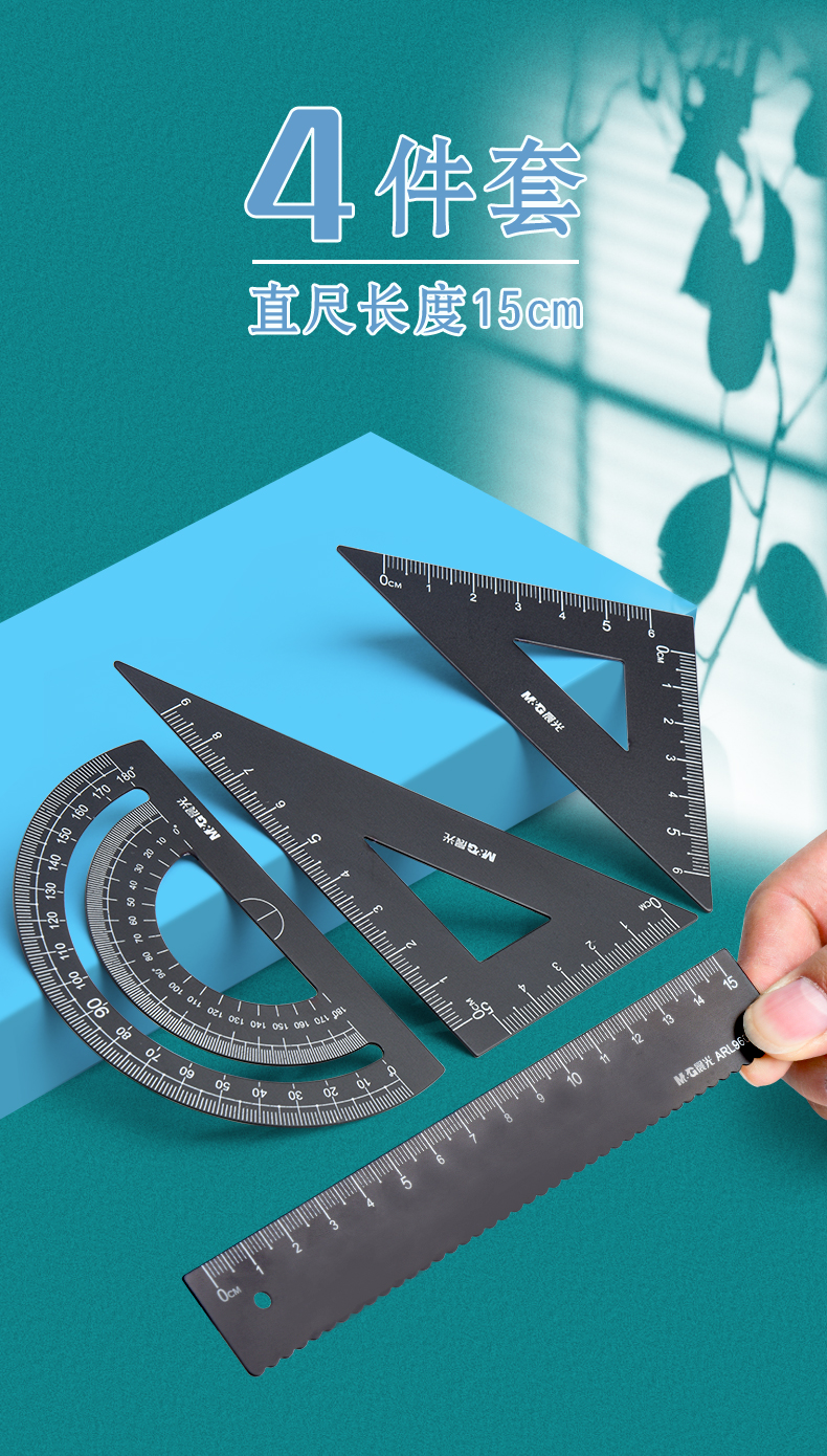 Chenguang 금속 통치자 세트 문구 알루미늄 합금 그림 초등학교 학생들을위한 웨이브 반얀과 통치자 삼각형 통치자 세트스토어 가기