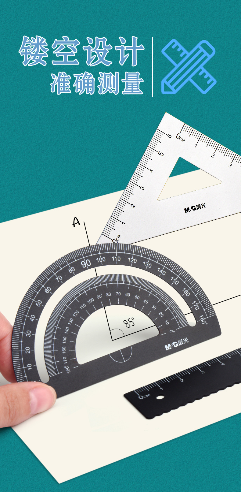 Chenguang 금속 통치자 세트 문구 알루미늄 합금 그림 초등학교 학생들을위한 웨이브 반얀과 통치자 삼각형 통치자 세트