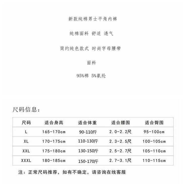 남자 속옷 7A 순면 통기성 권투 선수 편지 벨트 중간 허리 복서 간단한 단색 스포츠 반바지