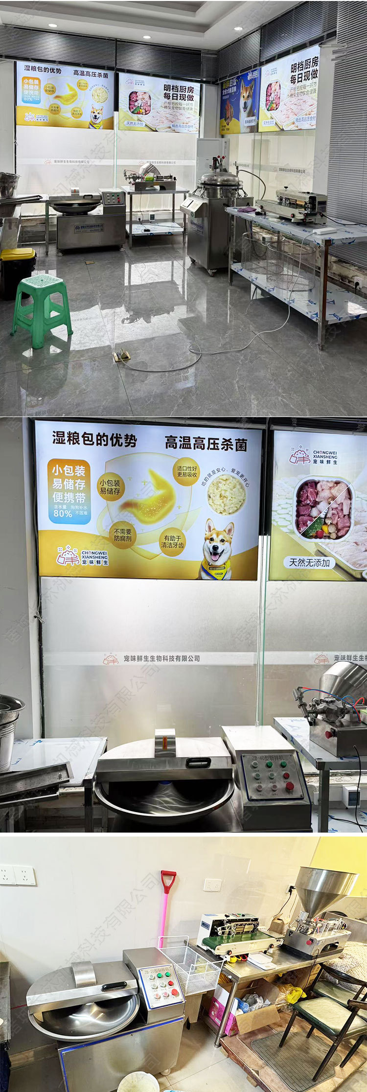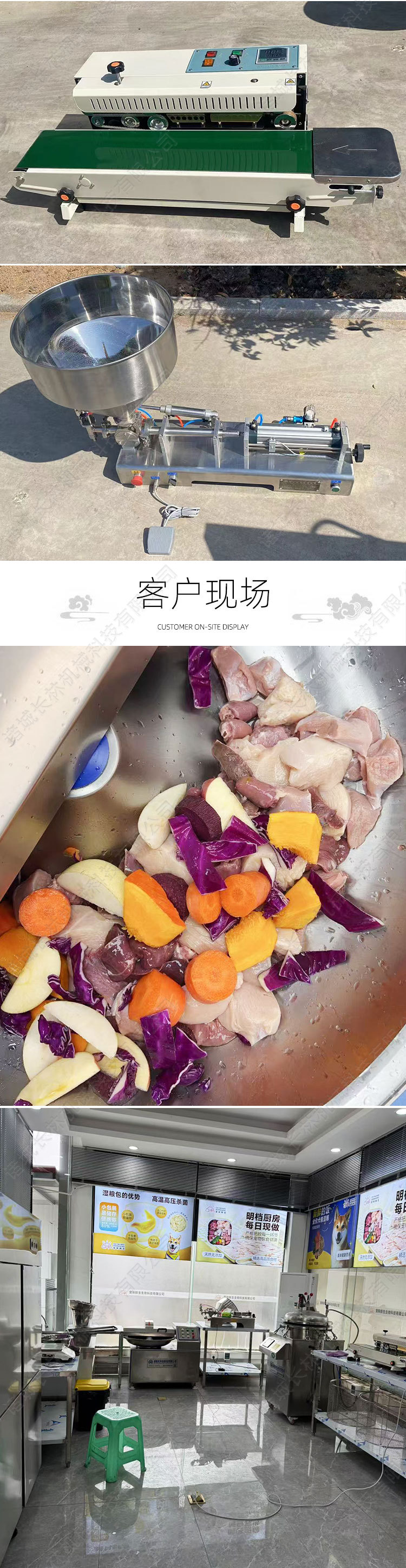 애완 동물 신선한 식사 가방 라인 애완 동물 젖은 식품 가공 완벽한 장비 고기 다진 과일 및 야채 가공 장비스토어 가기