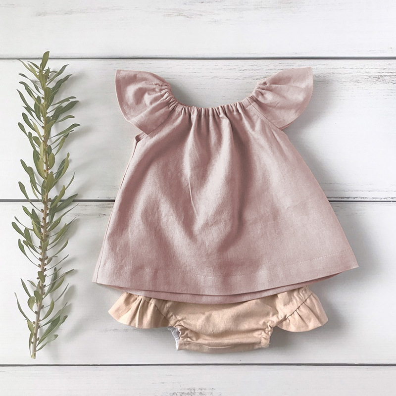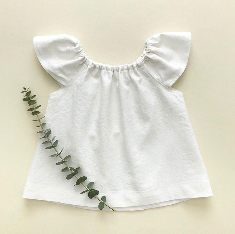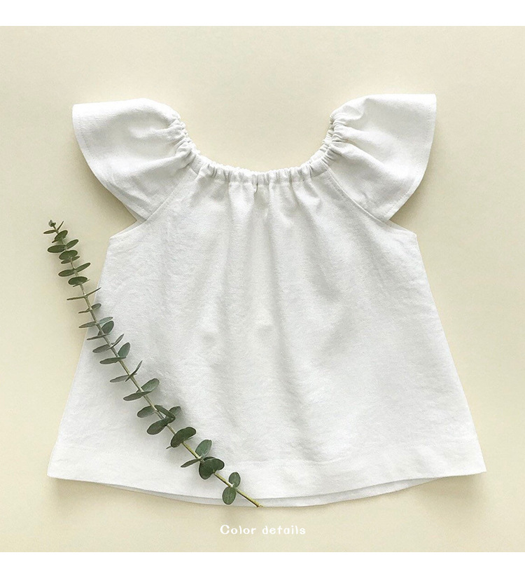 【재고정리】 여아 민소매 면마 상의, 작은 날개소매 아동복, 라운드넥 여아 귀여운 반팔 티셔츠스토어 가기