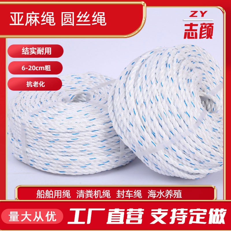 폴리 프로필렌 플랫 와이어 로프 pp Mariculture 로프 순수 신소재 산업용 아마 로프 볼드 3 스트랜드 지반 기술 로프스토어 가기