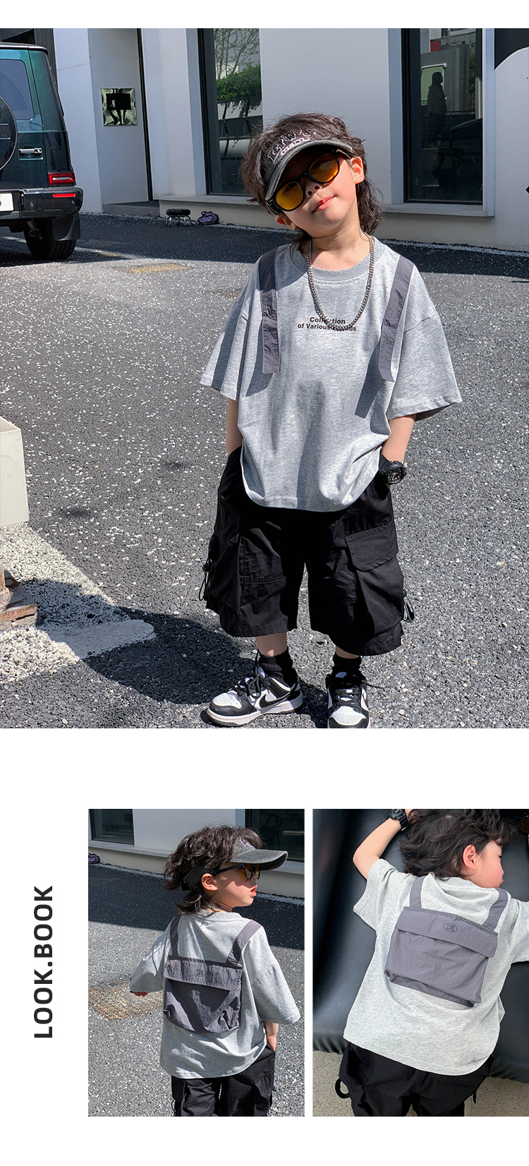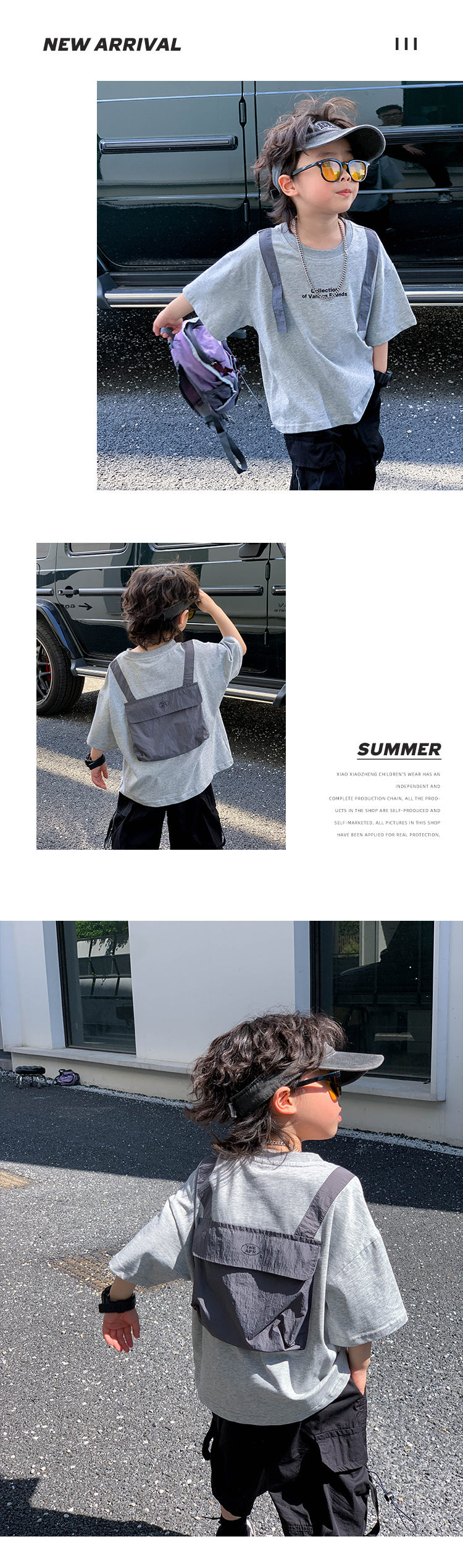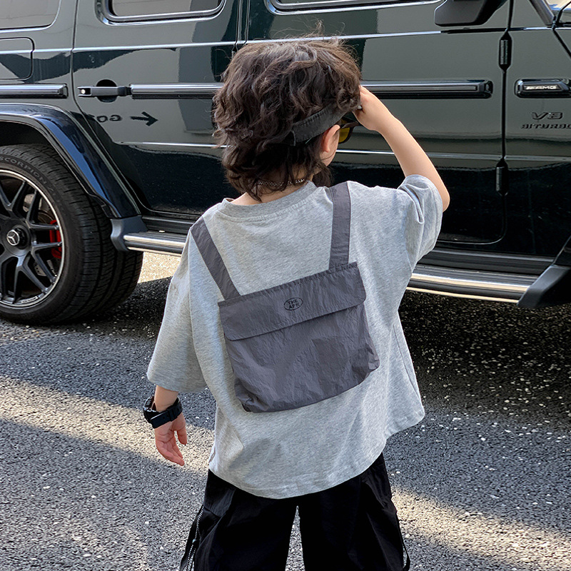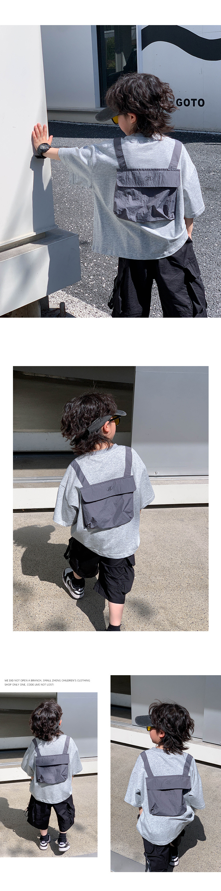 소년 배낭 반팔 티셔츠 어린이 및 중년 어린이를위한 여름 새로운 어린이 라운드 넥 캐주얼 셔츠 느슨한 풀오버