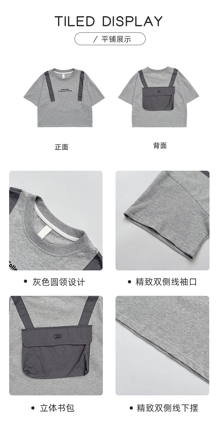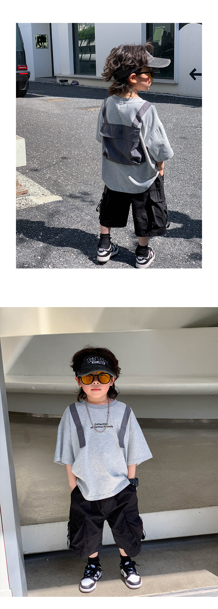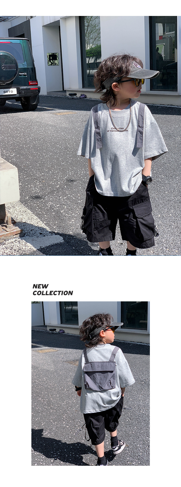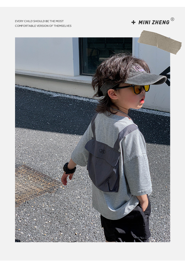 소년 배낭 반팔 티셔츠 어린이 및 중년 어린이를위한 여름 새로운 어린이 라운드 넥 캐주얼 셔츠 느슨한 풀오버