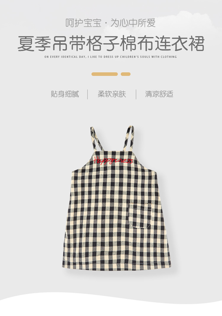 2025 여아 여름 얇은 스트랩 원피스 패셔너블하고 세련된 체크무늬 아기 점프수트 인기 아기 원피스스토어 가기