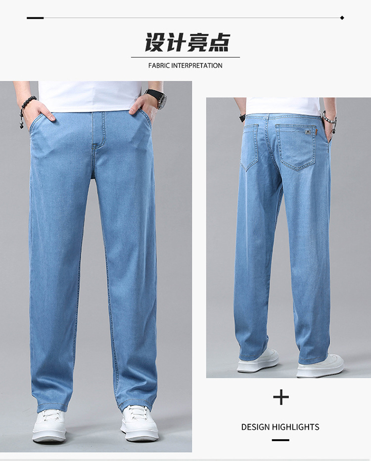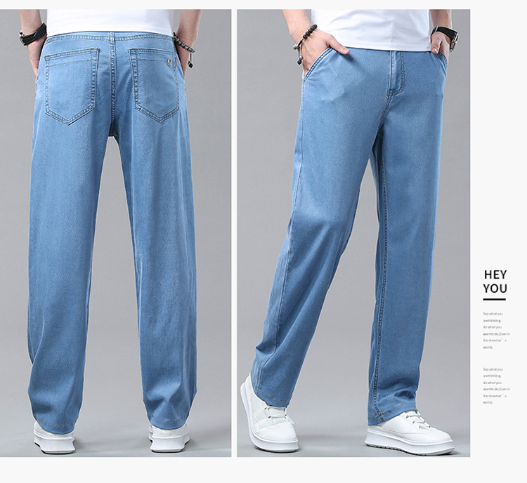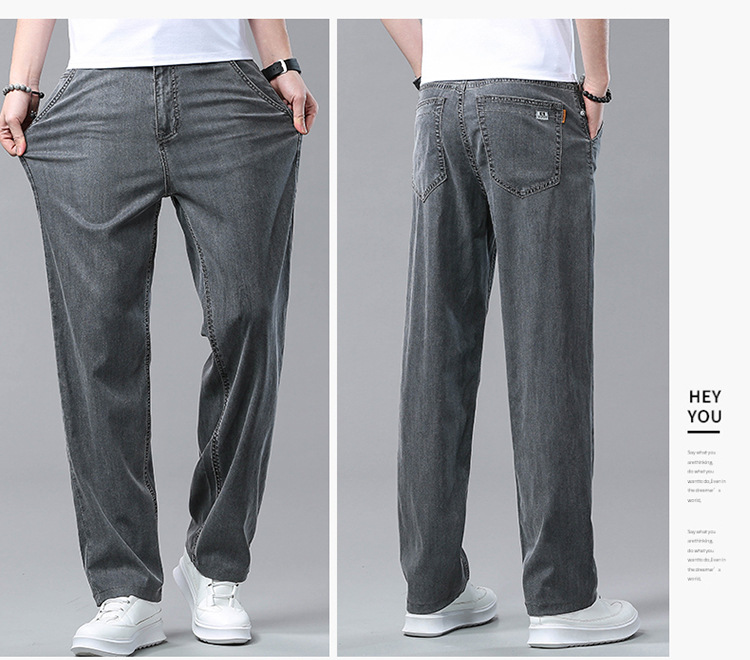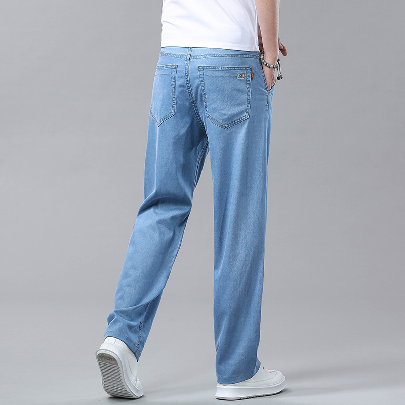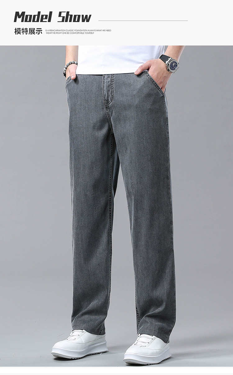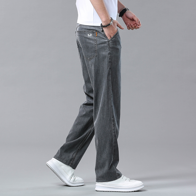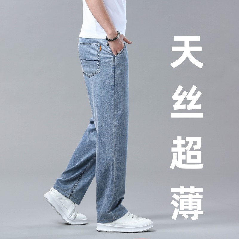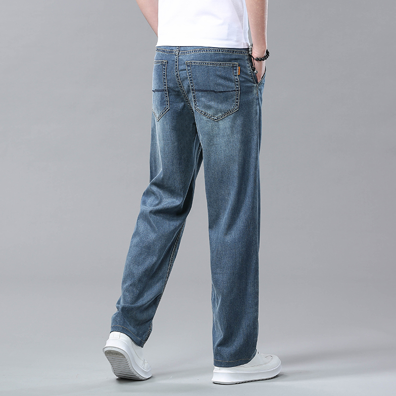 여름 얼음 실크 청바지 남성 느슨한 스트레이트 긴 바지 Xintang 하이 엔드 텐셀 얇은 캐주얼 남성 바지 초박형스토어 가기